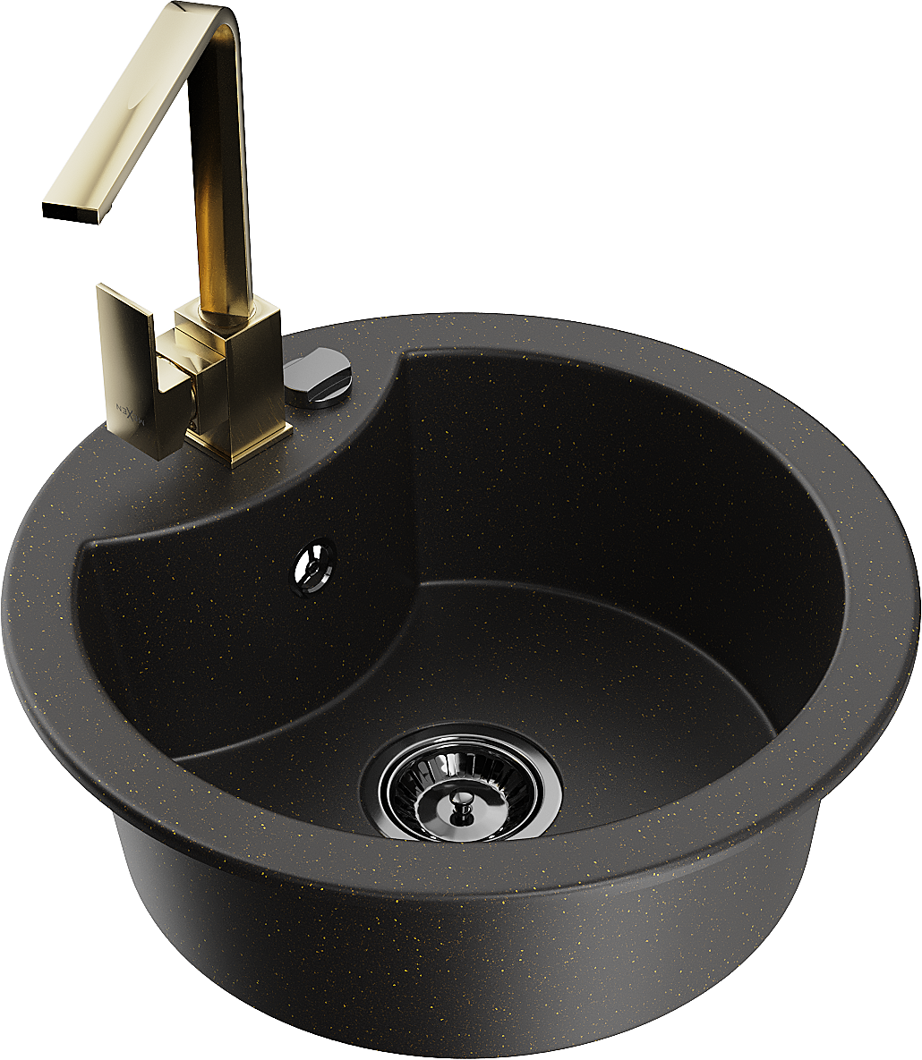 Mexen Diego lavello da cucina in granito a 1 vasca con miscelatore cucina Rita, nero/oro metallico - 6512-75-670300-50-B