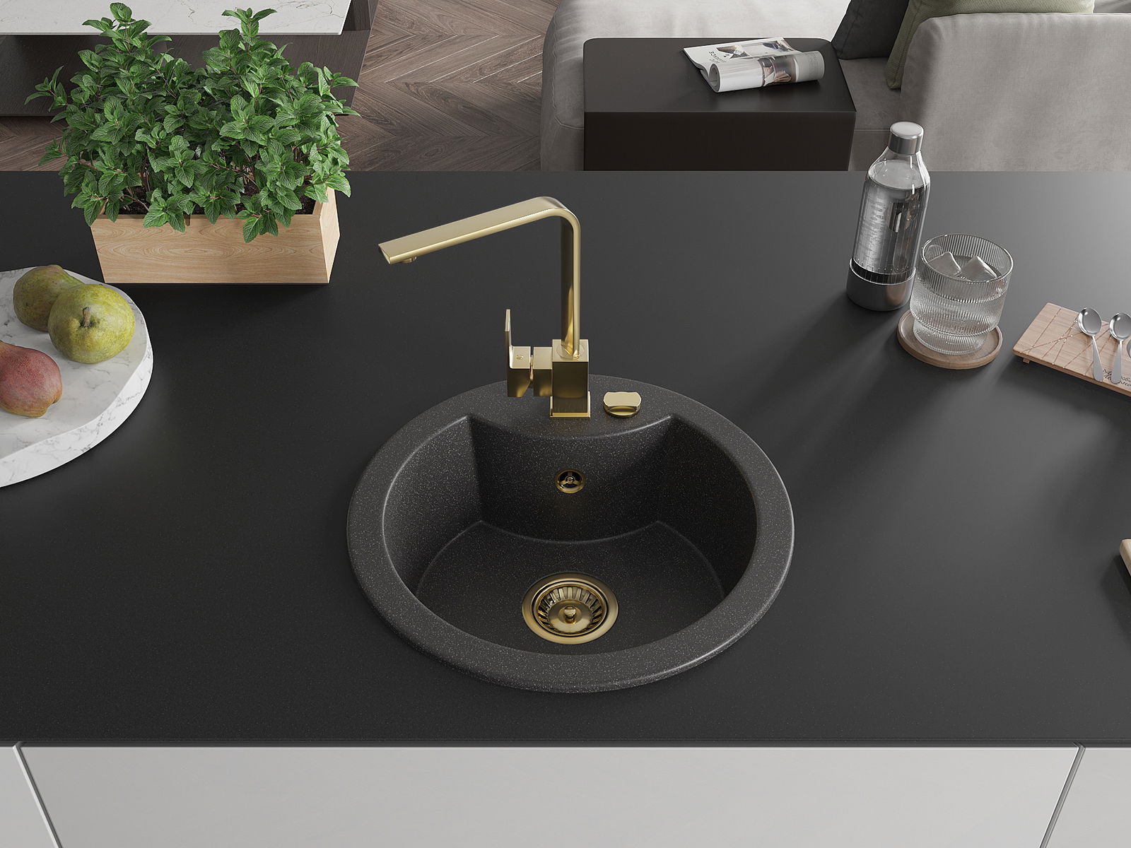 Il lavello è realizzato in granito di alta qualità. Rappresenta un complemento elegante e, soprattutto, pratico per ogni cucina, indipendentemente dal suo stile. L'alta qualità e la durata del granito garantiscono un utilizzo che dura per molti anni.