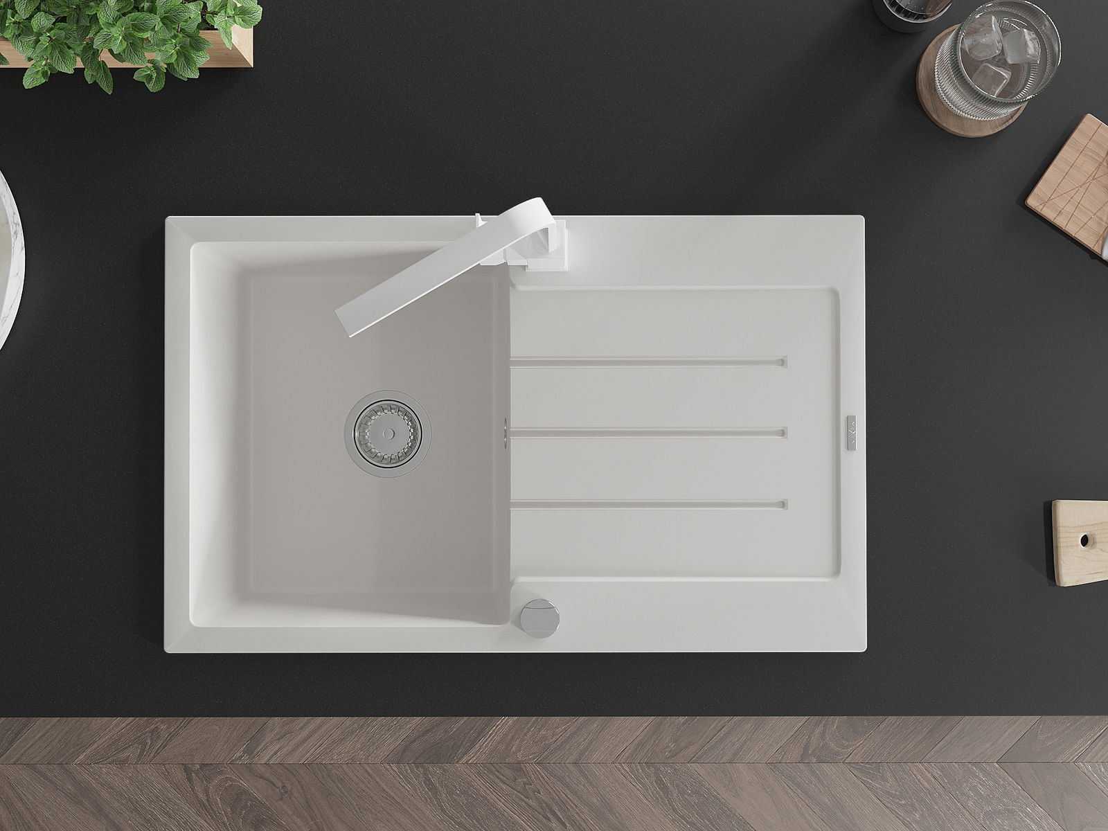 Mexen Bruno lavello in granito a 1 vasca con sgocciolatoio e rubinetto da cucina Rita, bianco - 6513-20-670300-20