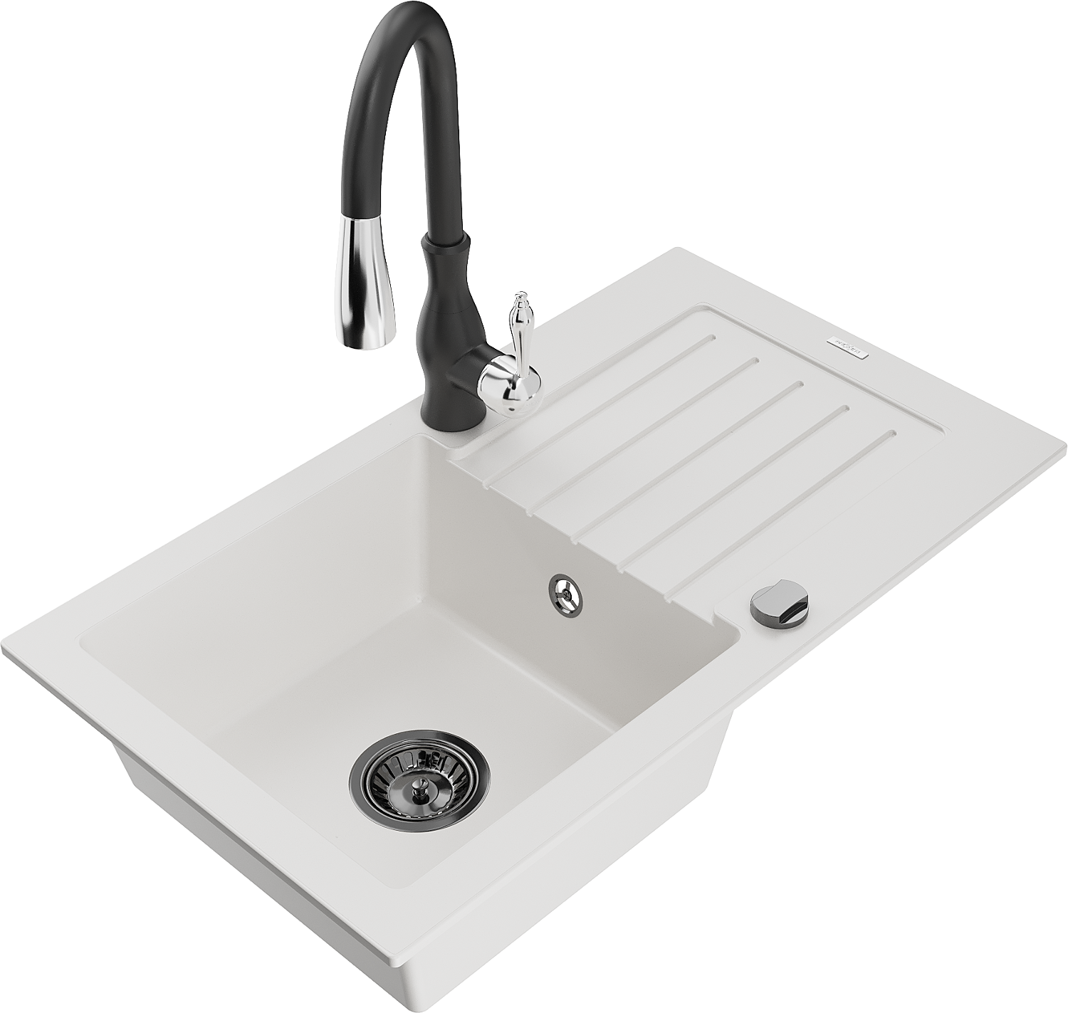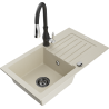 Mexen Pablo lavello da cucina in granito a 1 vasca con scolapiatti e rubinetto Savita, bianco - 6510-20-672601-70