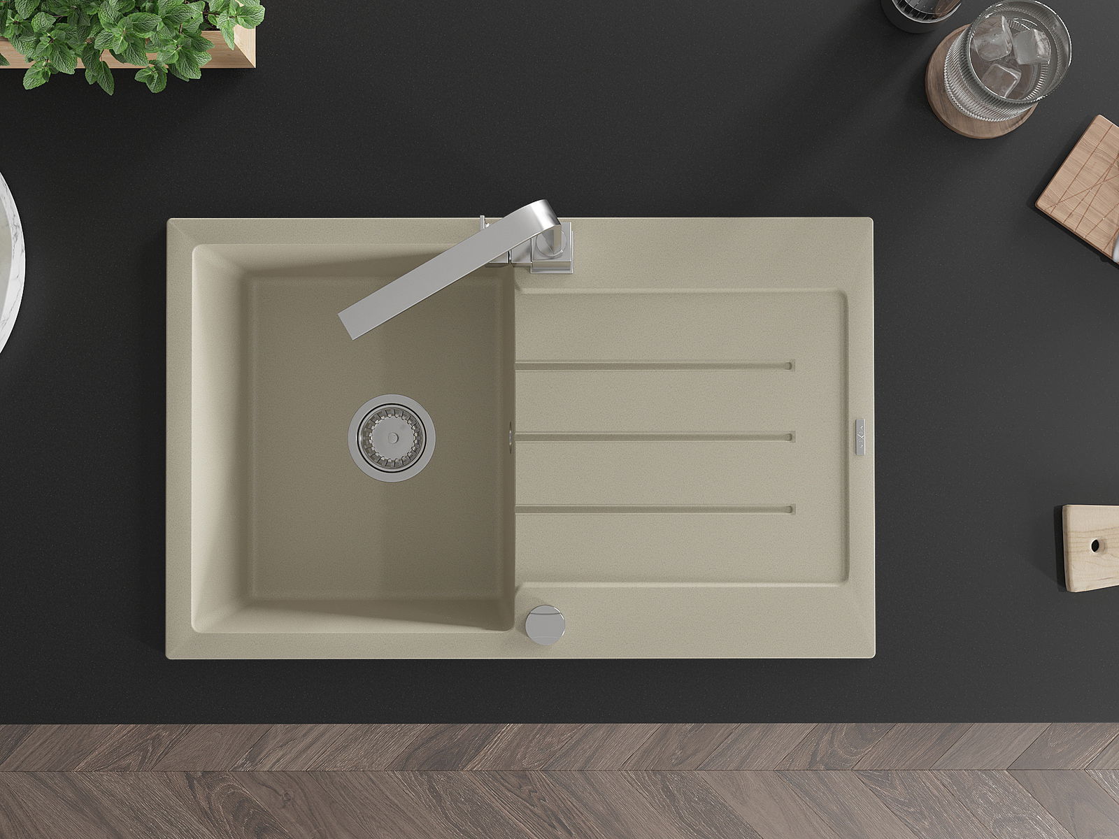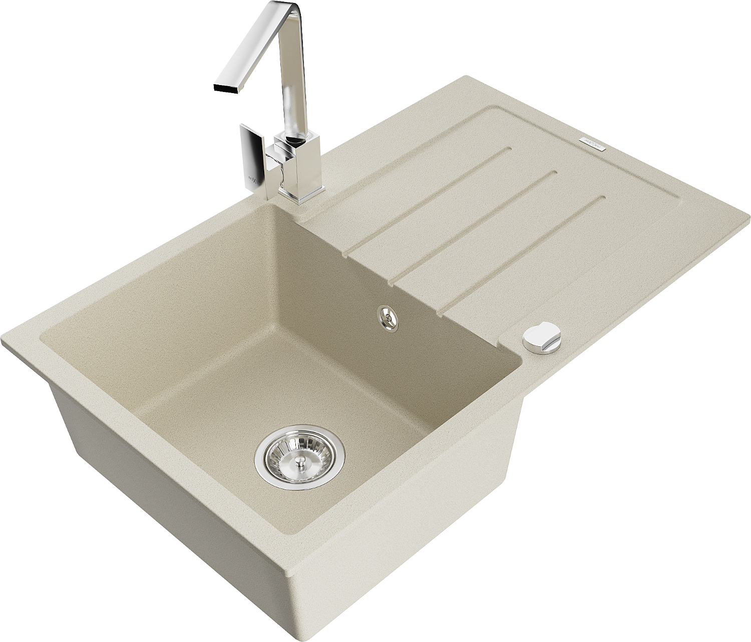 Mexen Bruno lavello in granito a 1 vasca con scolapiatti e rubinetto da cucina Rita, beige - 6513-69-670300-00