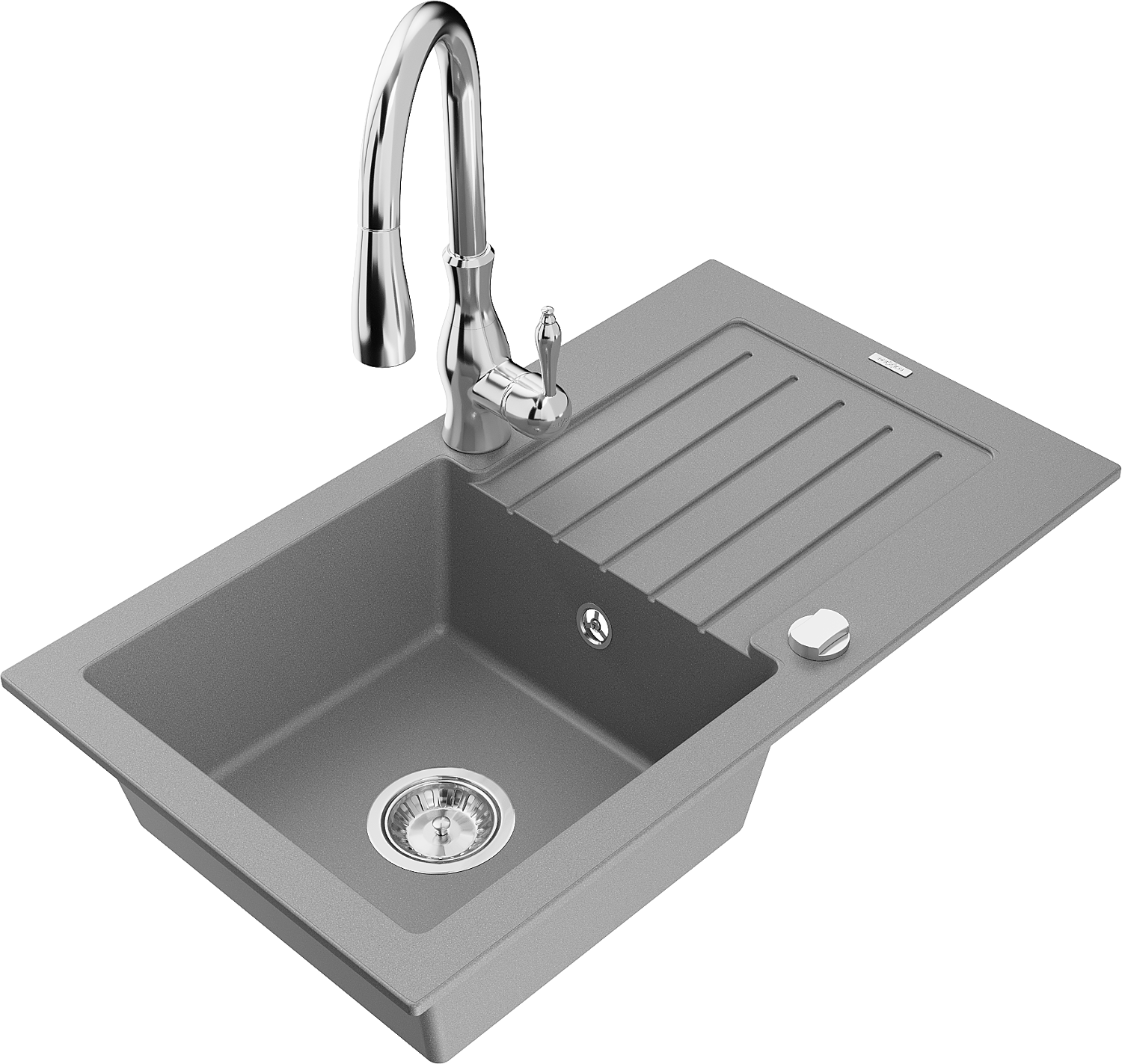 Mexen Pablo lavello da cucina in granito a 1 vasca con sgocciolatoio e rubinetto da cucina Savita, grigio - 6510-71-672601-00