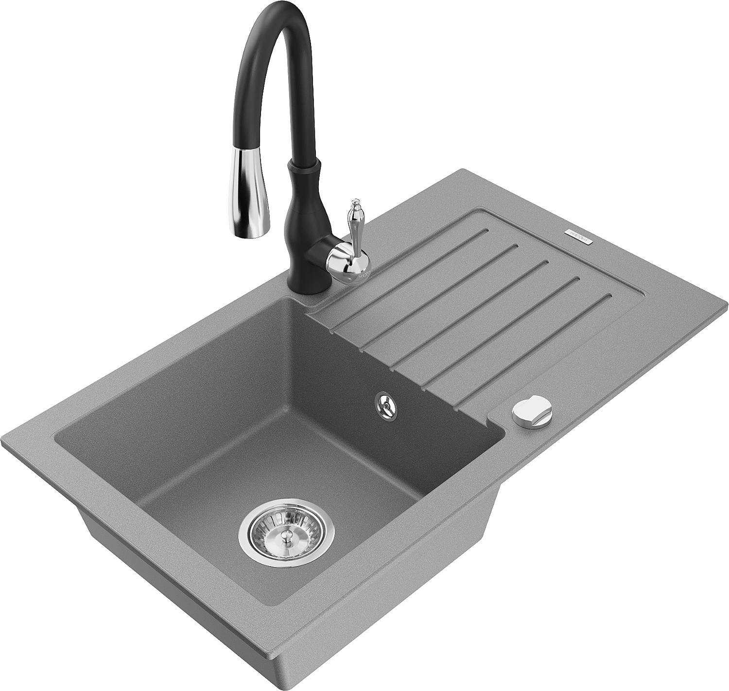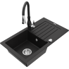 Mexen Pablo lavello in granito a 1 vasca con scolapiatti e rubinetto da cucina Savita, grigio - 6510-71-672601-70