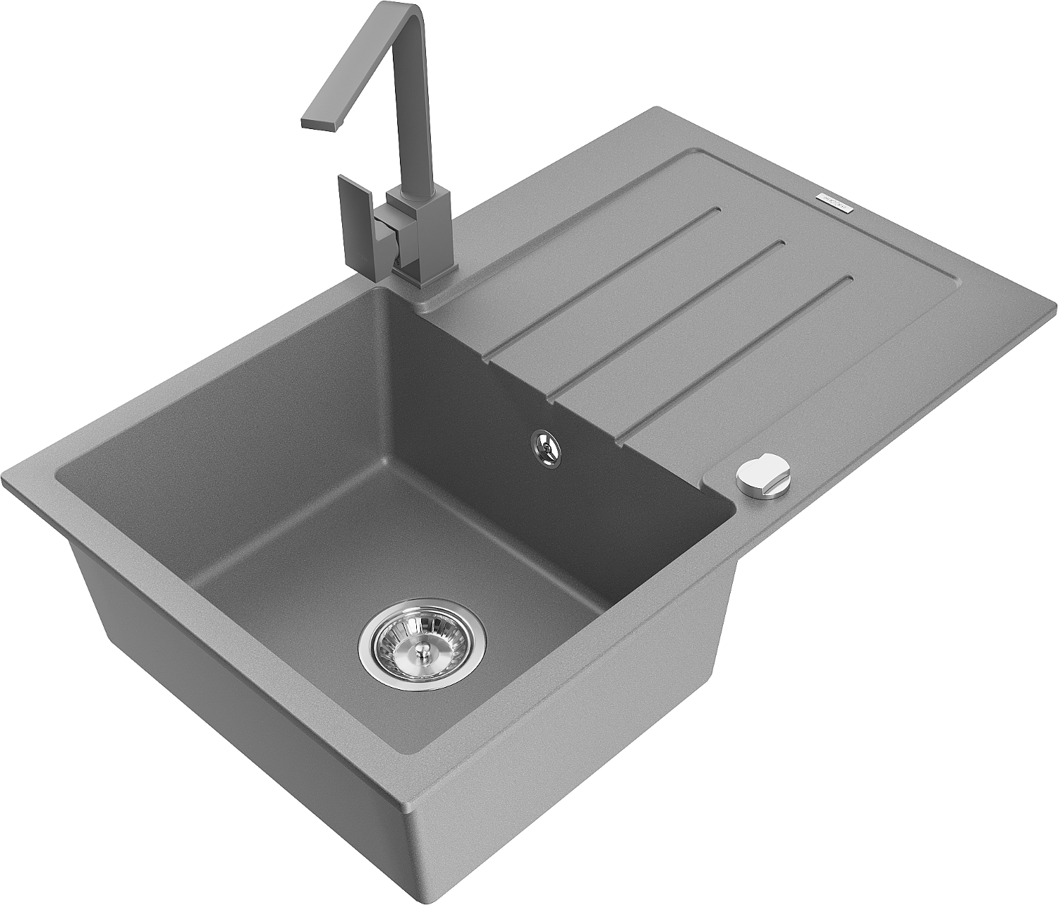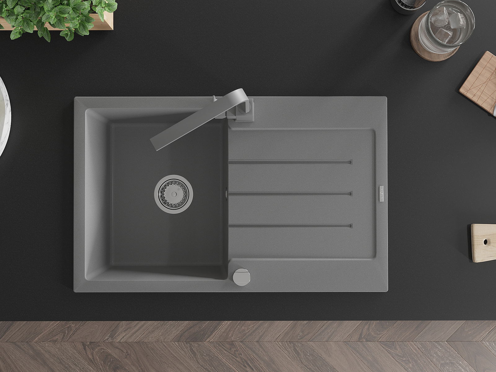 Mexen Bruno lavello in granito 1-vasca con scolapiatti e miscelatore cucina Rita, grigio - 6513-71-670300-71