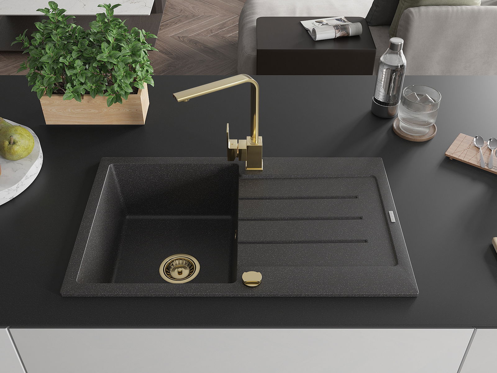 La scelta di un lavello con sgocciolatoio è una soluzione pratica che consente di riporre piatti, verdure e frutta lavati. Lo sgocciolatoio facilita la cucina quotidiana e aiuta a mantenere l'ordine in cucina.