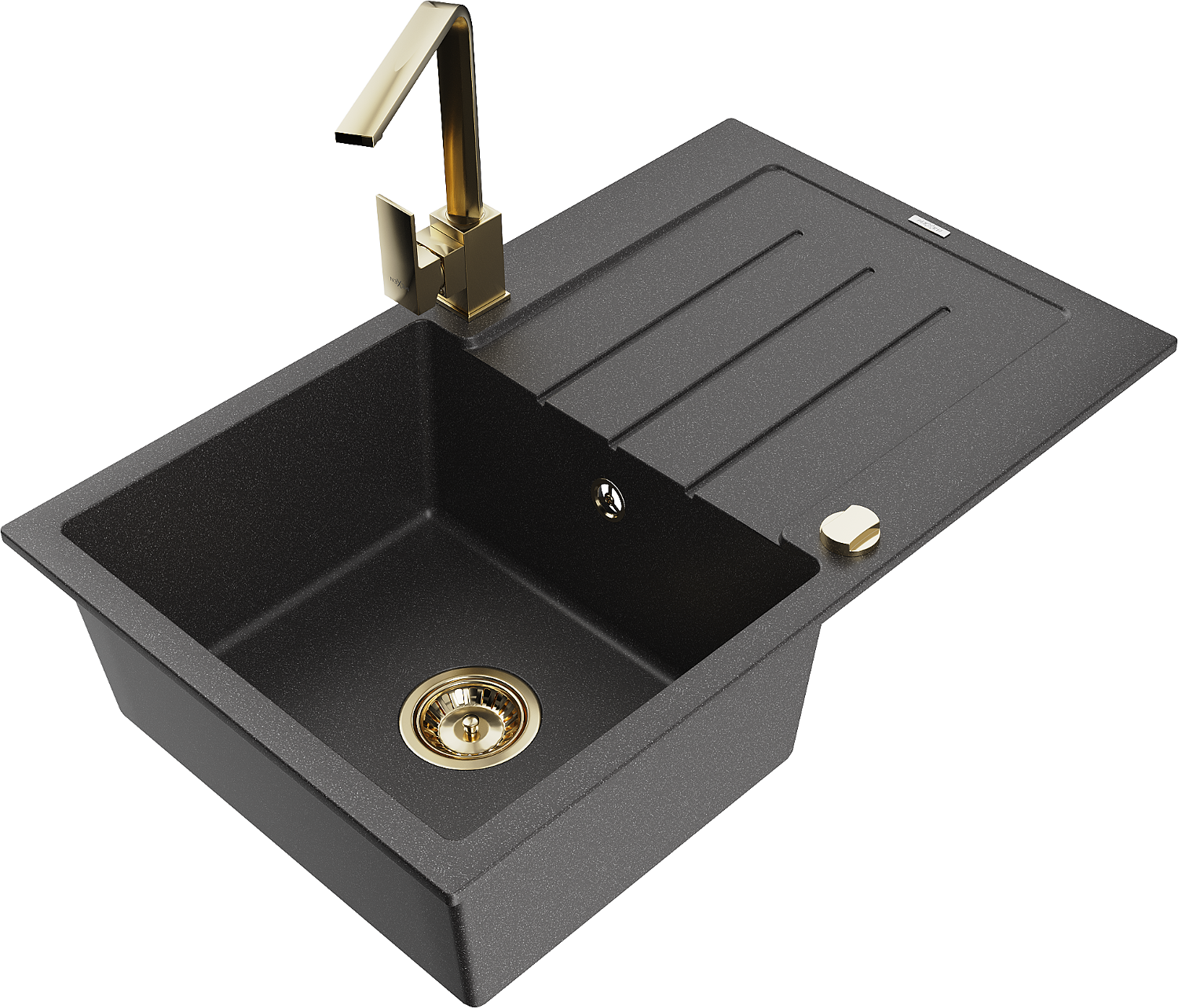 Mexen Bruno lavello in granito a 1 vasca con scolapiatti e rubinetto da cucina Rita, nero maculato - 6513-76-670300-50