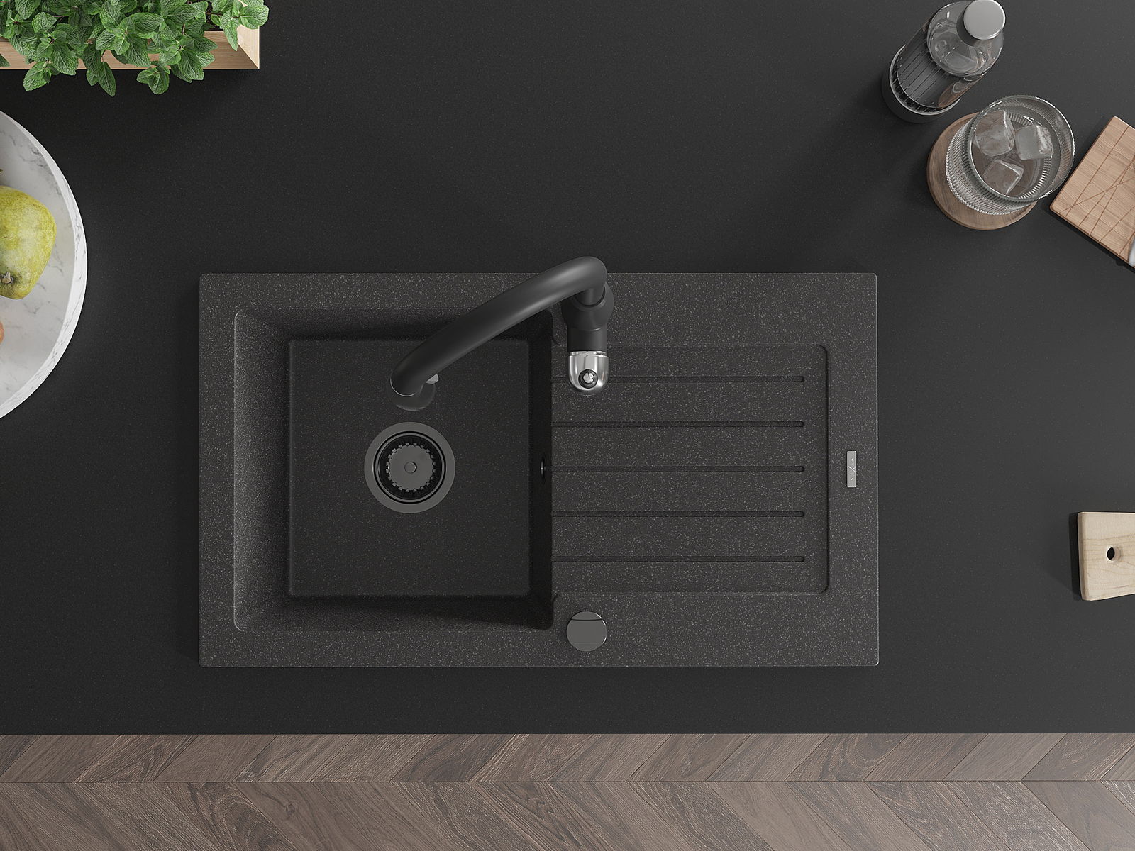 Il lavello è realizzato in granito di alta qualità. Rappresenta un complemento elegante e, soprattutto, pratico per ogni cucina, indipendentemente dal suo stile. L'alta qualità e la durata del granito garantiscono un utilizzo che dura per molti anni.