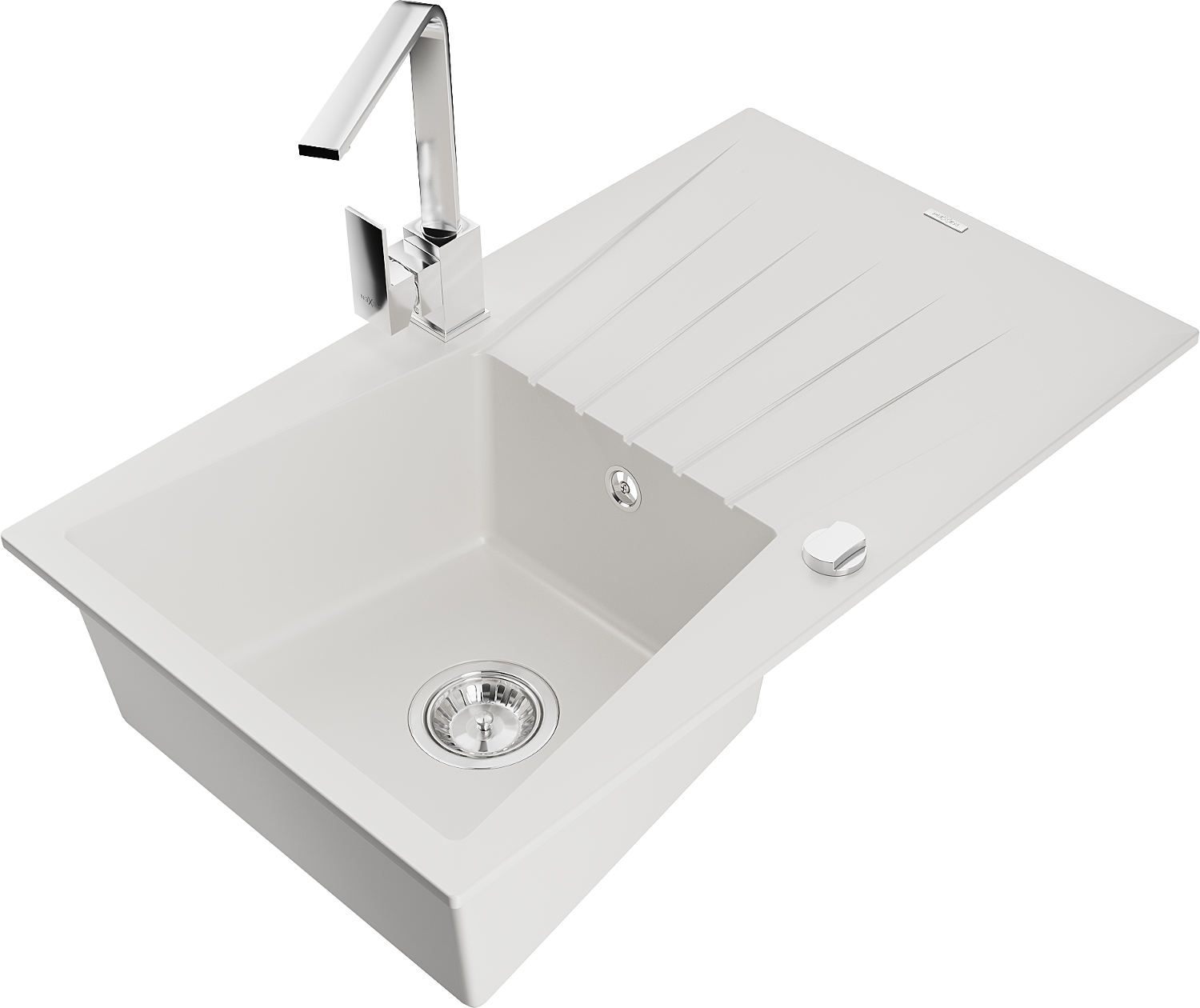 Mexen Cesar lavello in granito 1-vasca con scolapiatti e rubinetto cucina Rita, bianco - 6514-20-670300-00