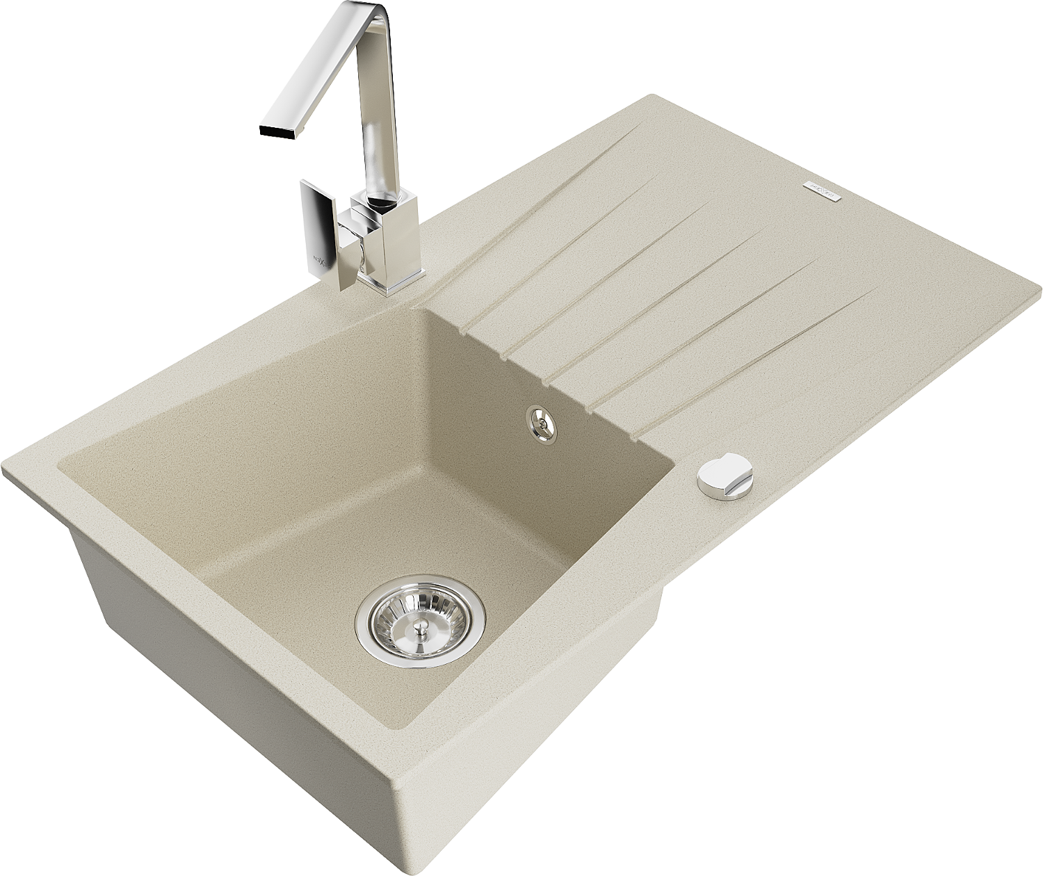 Mexen Cesar lavello in granito a 1 vasca con scolapiatti e miscelatore cucina Rita, beige - 6514-69-670300-00