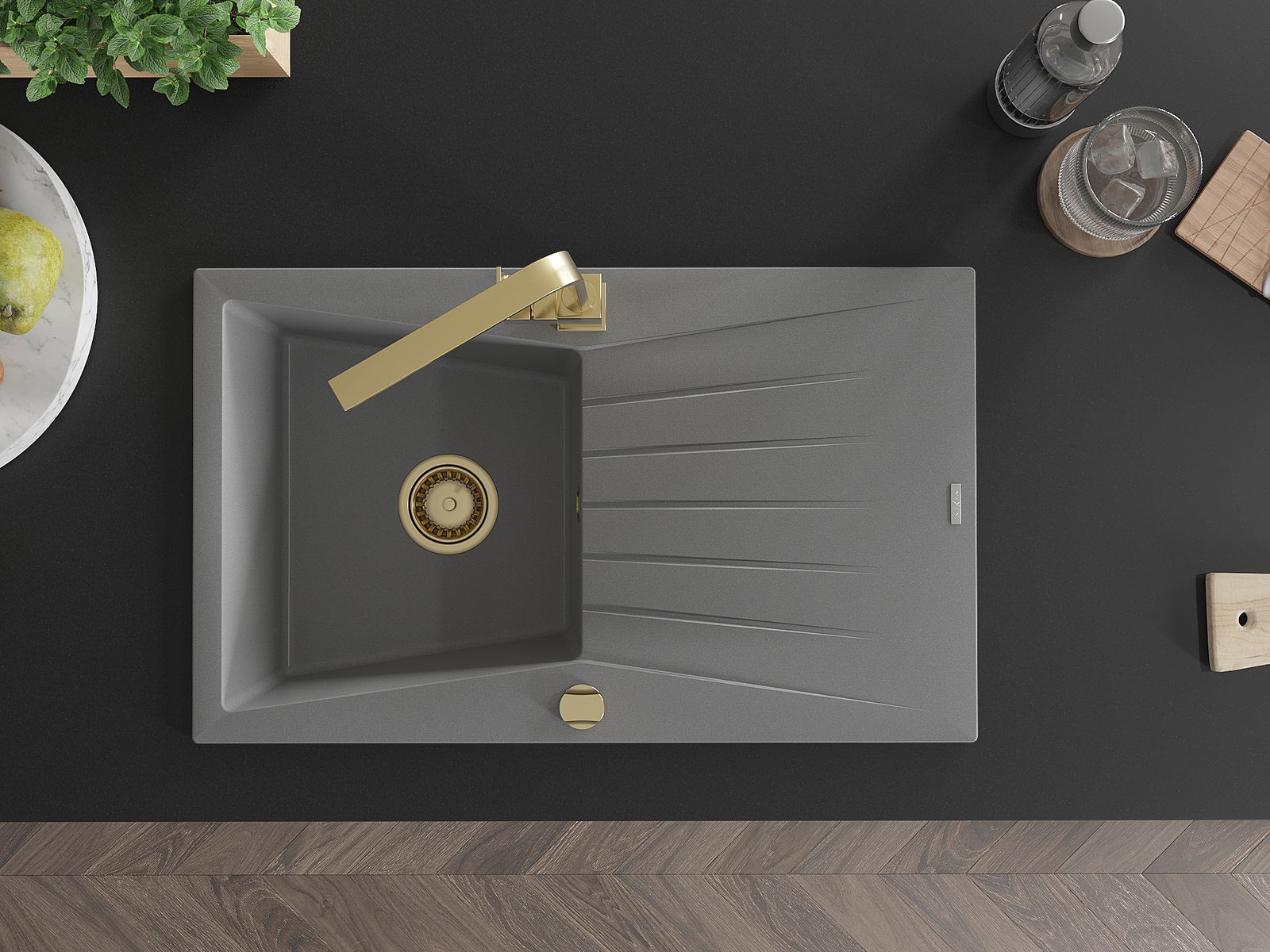 Mexen Cesar lavello in granito a 1 vasca con sgocciolatoio e rubinetto da cucina Rita, grigio - 6514-71-670300-50