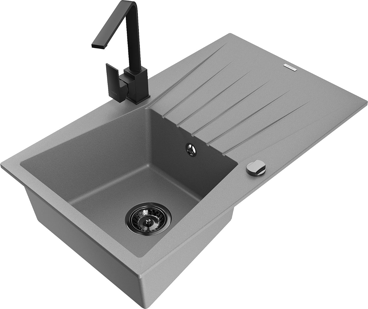 Mexen Cesar Lavello in Granito 1 Vasca con Scolapiatti e Miscelatore Cucina Rita, Grigio - 6514-71-670300-70-B