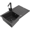 Mexen Cesar lavello in granito a 1 vasca con sgocciolatoio e rubinetto da cucina Rita, nero/argento metallizzato