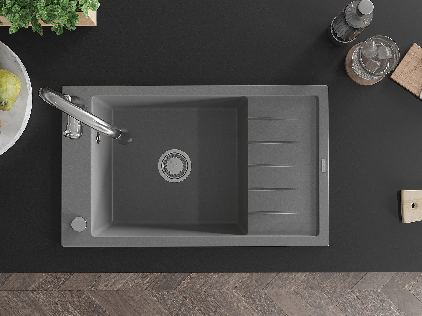 Mexen Elias lavello da cucina in granito a 1 vasca con sgocciolatoio e miscelatore cucina Savita, grigio - 6511-71-672601-00
