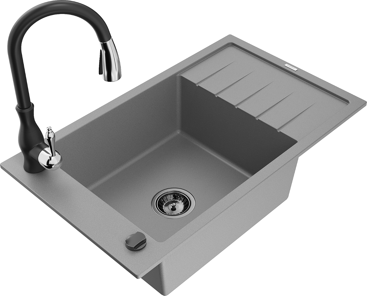 Mexen Elias lavello da cucina in granito 1-vasca con scolapiatti e rubinetto da cucina Savita, grigio - 6511-71-672601-70-B