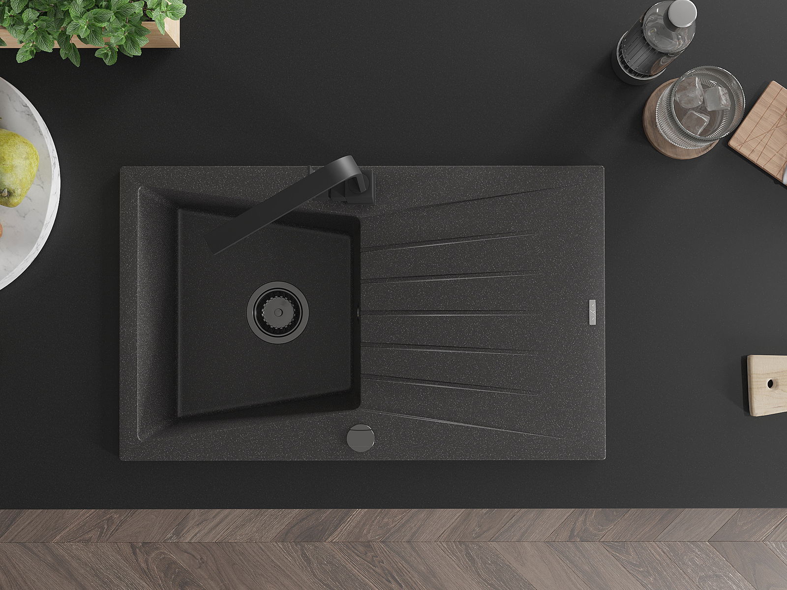 Il lavello è realizzato in granito di alta qualità. Rappresenta un complemento elegante e, soprattutto, pratico per ogni cucina, indipendentemente dal suo stile. L'alta qualità e la durata del granito garantiscono un utilizzo che dura per molti anni.