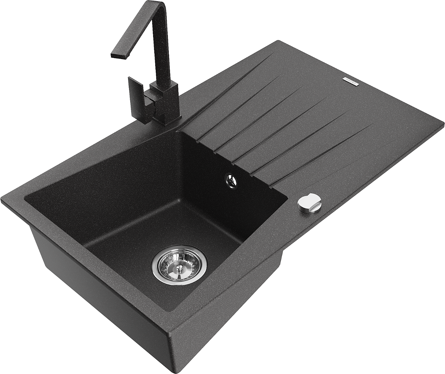 Mexen Cesar lavello in granito a 1 vasca con scolapiatti e miscelatore da cucina Rita, nero maculato - 6514-76-670300-76