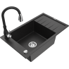 Mexen Elias lavello in granito 1 vasca con scolapiatti e rubinetto da cucina Savita, nero/oro metallizzato - 6511-75-672601-70