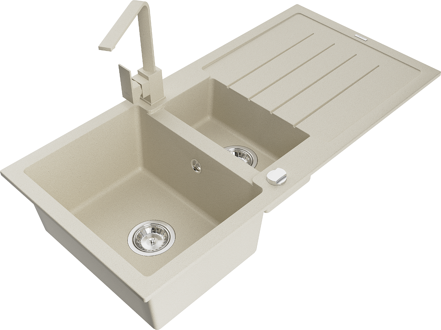 Mexen Andres lavello in granito a 1,5 vasche con scolapiatti e miscelatore cucina Rita, beige - 6515-69-670300-69