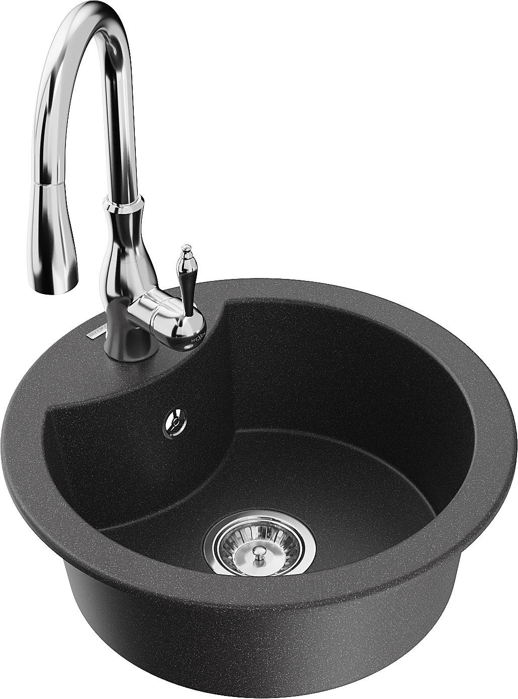 Mexen Diego lavello in granito a 1 vasca con rubinetto da cucina Savita, nero maculato - 6512-76-672601-00
