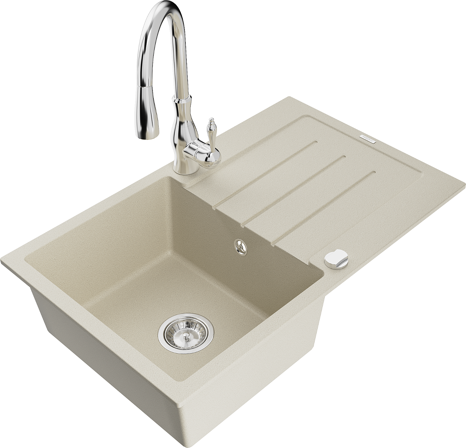 Mexen Bruno lavello in granito 1-vasca con sgocciolatoio e miscelatore da cucina Savita, beige - 6513-69-672601-00