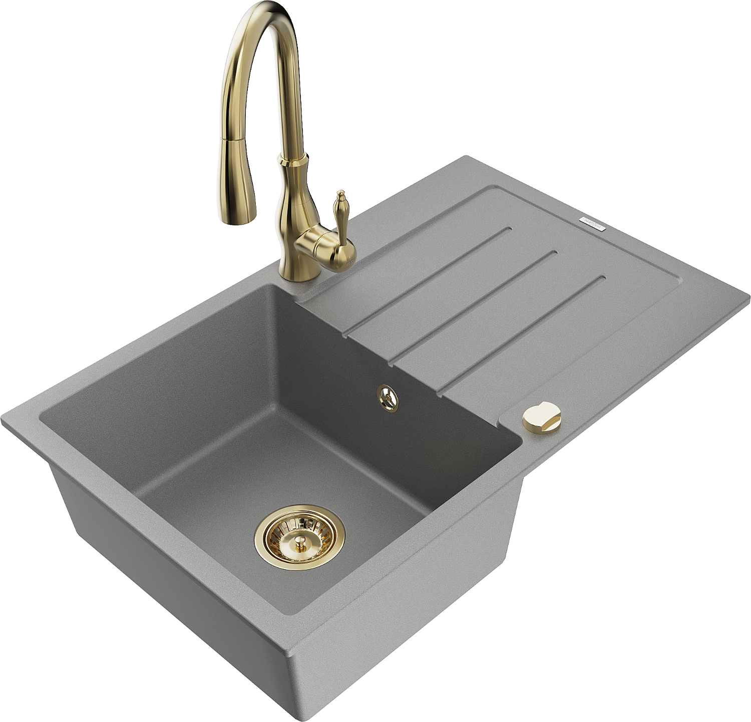 Mexen Bruno lavello in granito a 1 vasca con scolapiatti e miscelatore da cucina Savita, grigio - 6513-71-672601-50