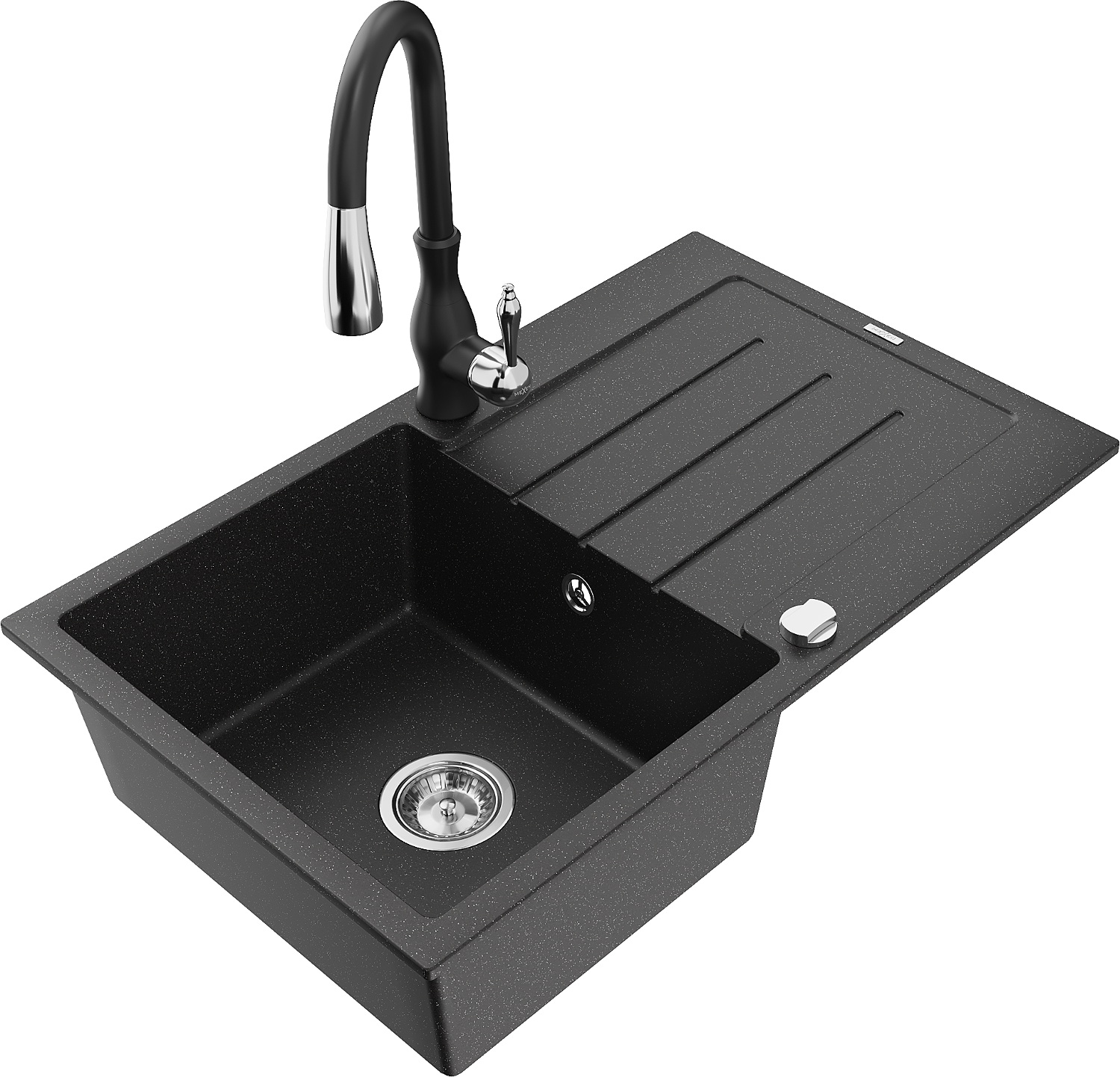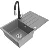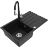 Mexen Bruno lavello in granito a 1 vasca con sgocciolatoio e rubinetto da cucina Savita, nero/argento metallizzato