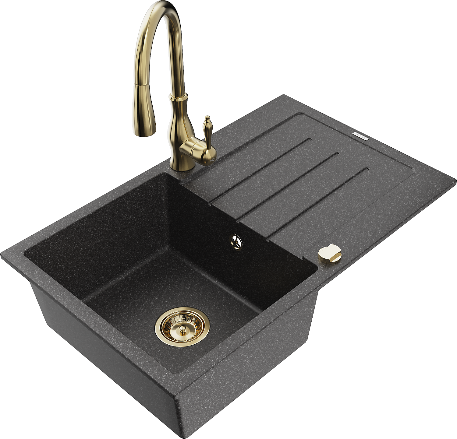 Il lavello è realizzato in granito di alta qualità. Rappresenta un complemento elegante e, soprattutto, pratico per ogni cucina, indipendentemente dal suo stile. L'alta qualità e la durata del granito garantiscono un utilizzo che dura per molti anni.
