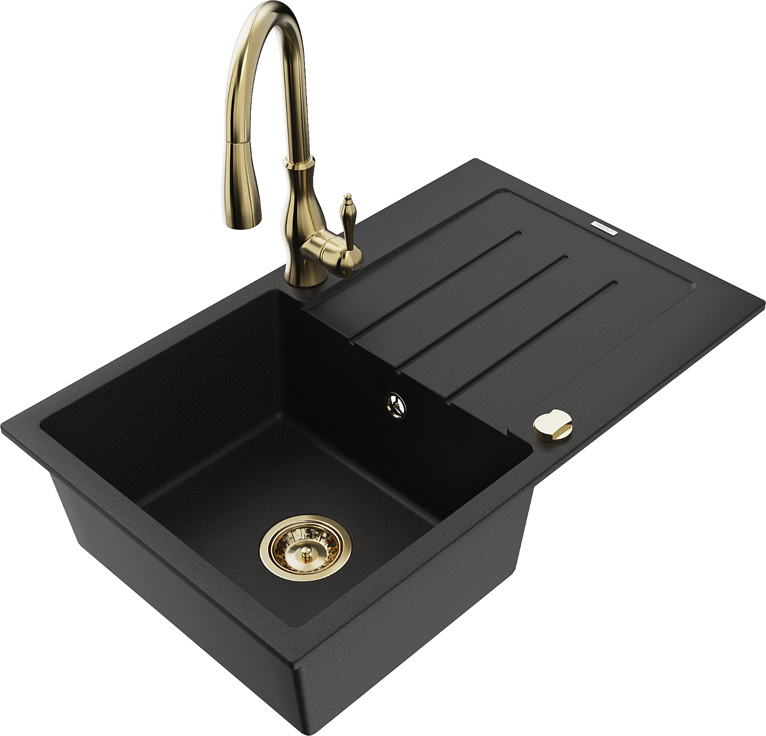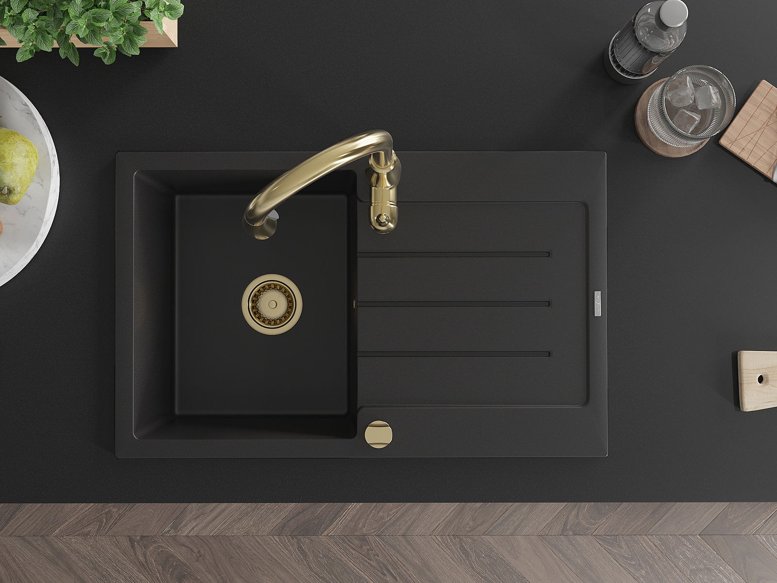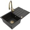 Mexen Bruno lavello in granito a 1 vasca con sgocciolatoio e rubinetto da cucina Savita, nero - 6513-77-672601-50