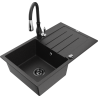Mexen Bruno lavello in granito a 1 vasca con sgocciolatoio e rubinetto da cucina Savita, nero - 6513-77-672601-70-B