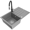 Mexen Bruno lavello in granito a 1 vasca con scolapiatti e rubinetto da cucina Savita, nero - 6513-77-672601-70