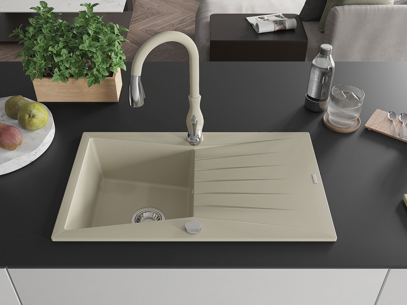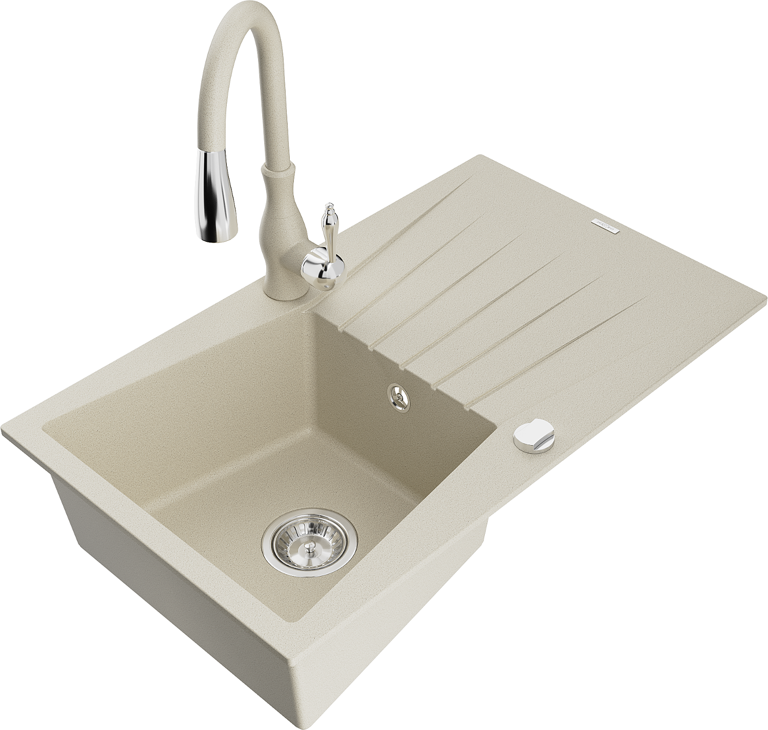 Mexen Cesar lavello in granito a 1 vasca con scolapiatti e rubinetto da cucina Savita, beige - 6514-69-672601-69