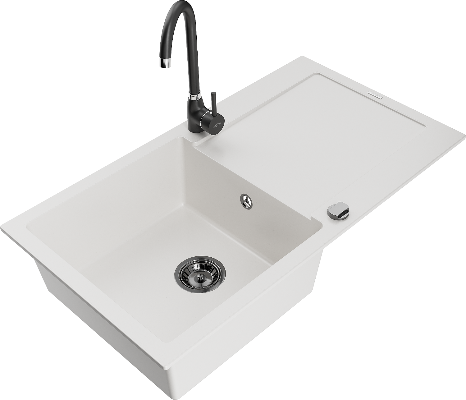Mexen Leo lavello da cucina in granito a 1 vasca con sgocciolatoio e rubinetto cucina Telma, bianco - 6501-20-670200-70