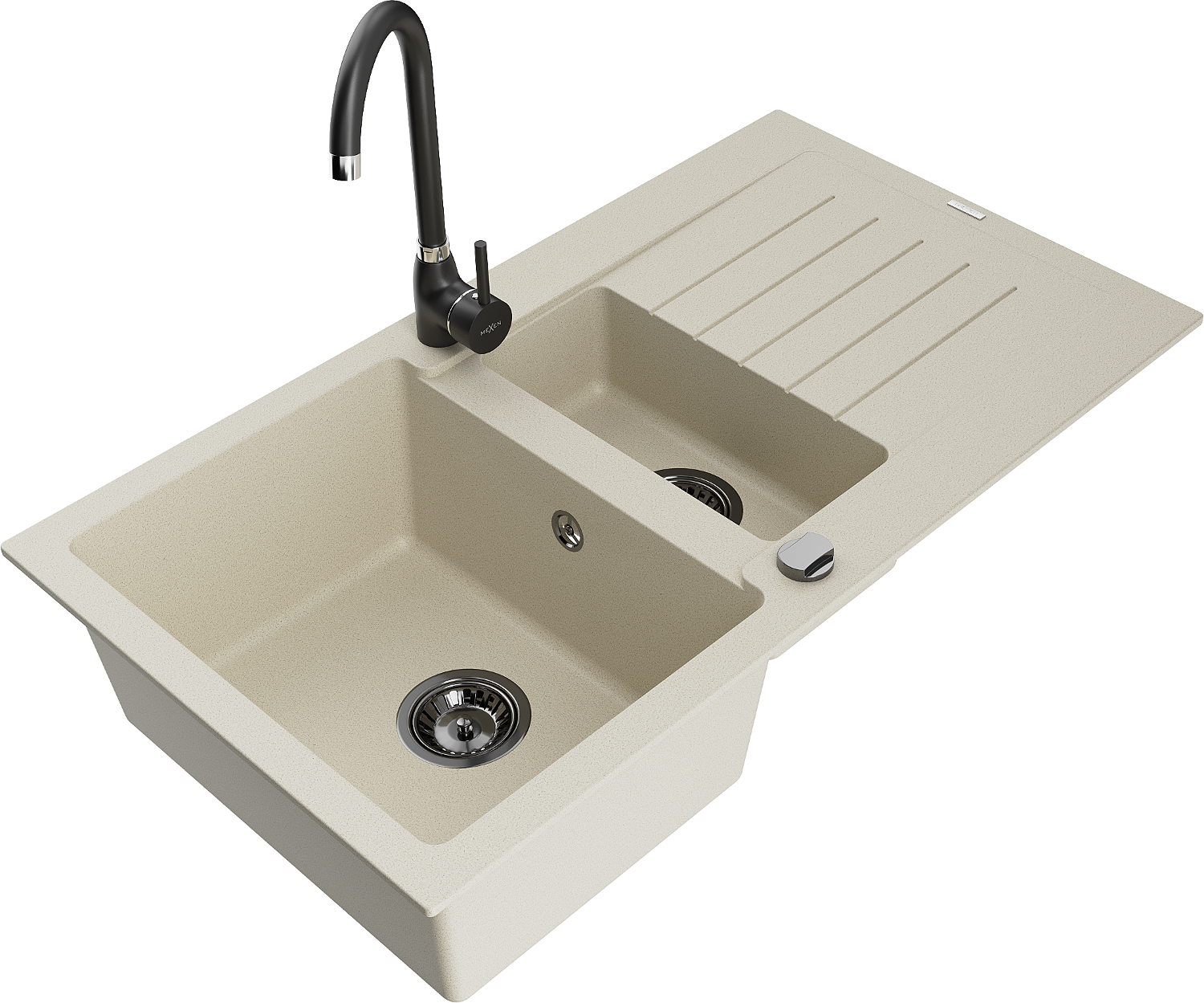 Mexen Matias lavello in granito 1,5 vasca con sgocciolatoio e rubinetto da cucina Telma, beige - 6502-69-670200-70