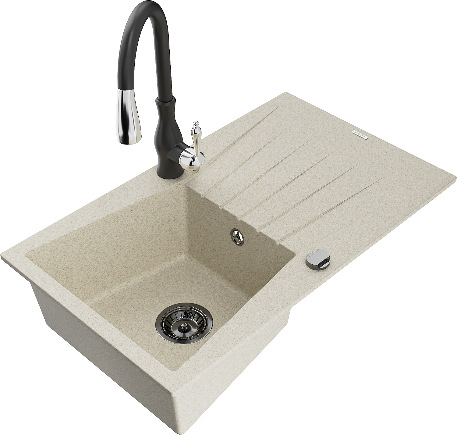 Mexen Cesar lavello da cucina in granito a 1 vasca con sgocciolatoio e miscelatore Savita, beige - 6514-69-672601-70