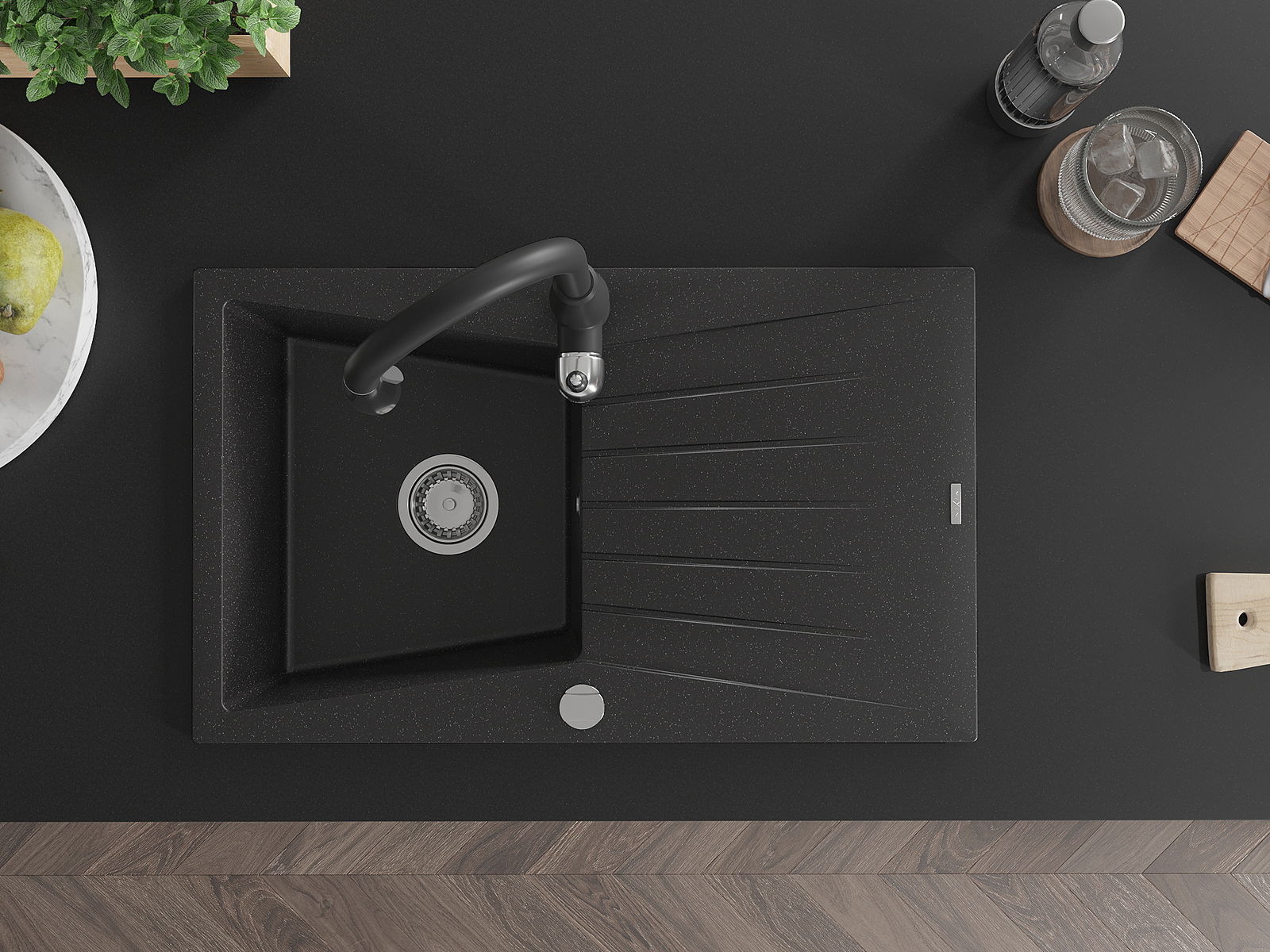 Mexen Cesar lavello in granito a 1 vasca con scolapiatti e rubinetto da cucina Savita, nero/argento metallizzato