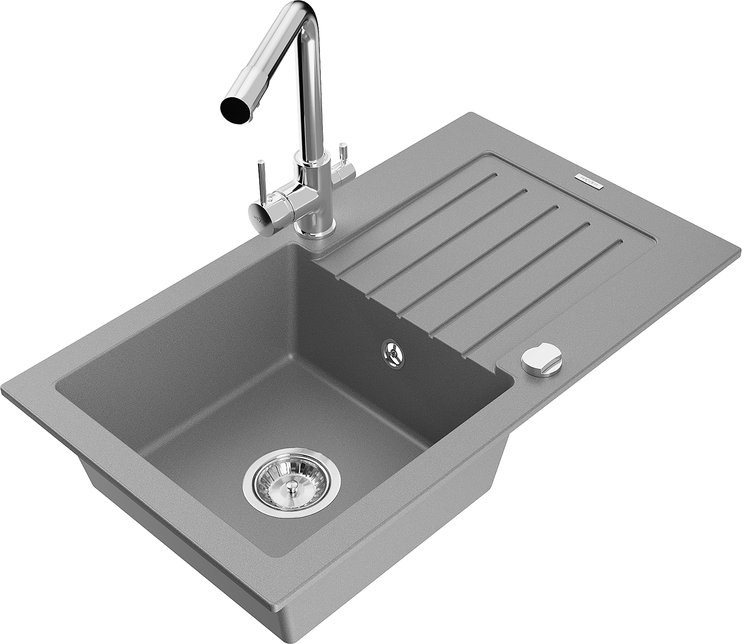 Mexen Pablo lavello in granito a 1 vasca con gocciolatoio e rubinetto da cucina Duero, grigio - 6510-71-671600-00