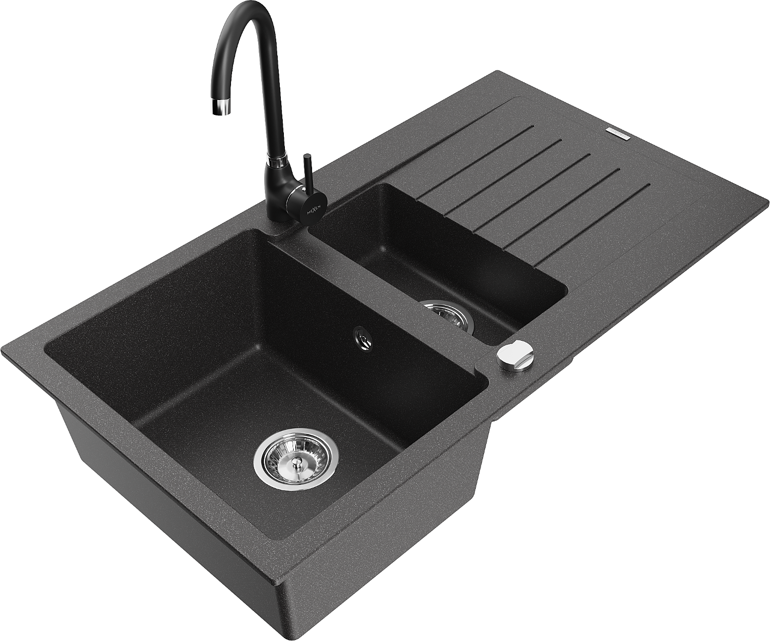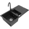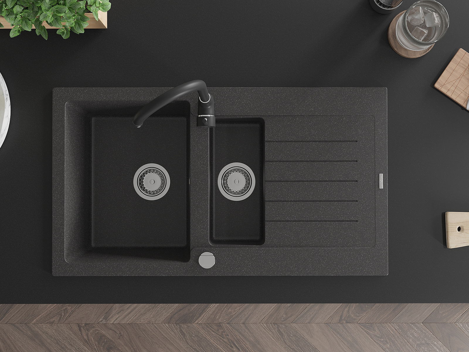 Mexen Matias lavello in granito 1,5 vasche con gocciolatoio e rubinetto cucina Telma, nero punteggiato - 6502-76-670200-70