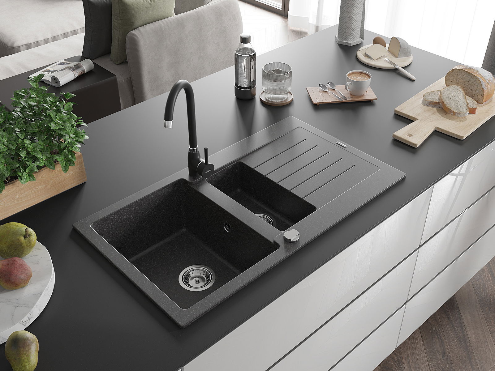 Il lavello è realizzato in granito di alta qualità. Rappresenta un complemento elegante e, soprattutto, pratico per ogni cucina, indipendentemente dal suo stile. L'alta qualità e la durata del granito garantiscono un utilizzo che dura per molti anni.