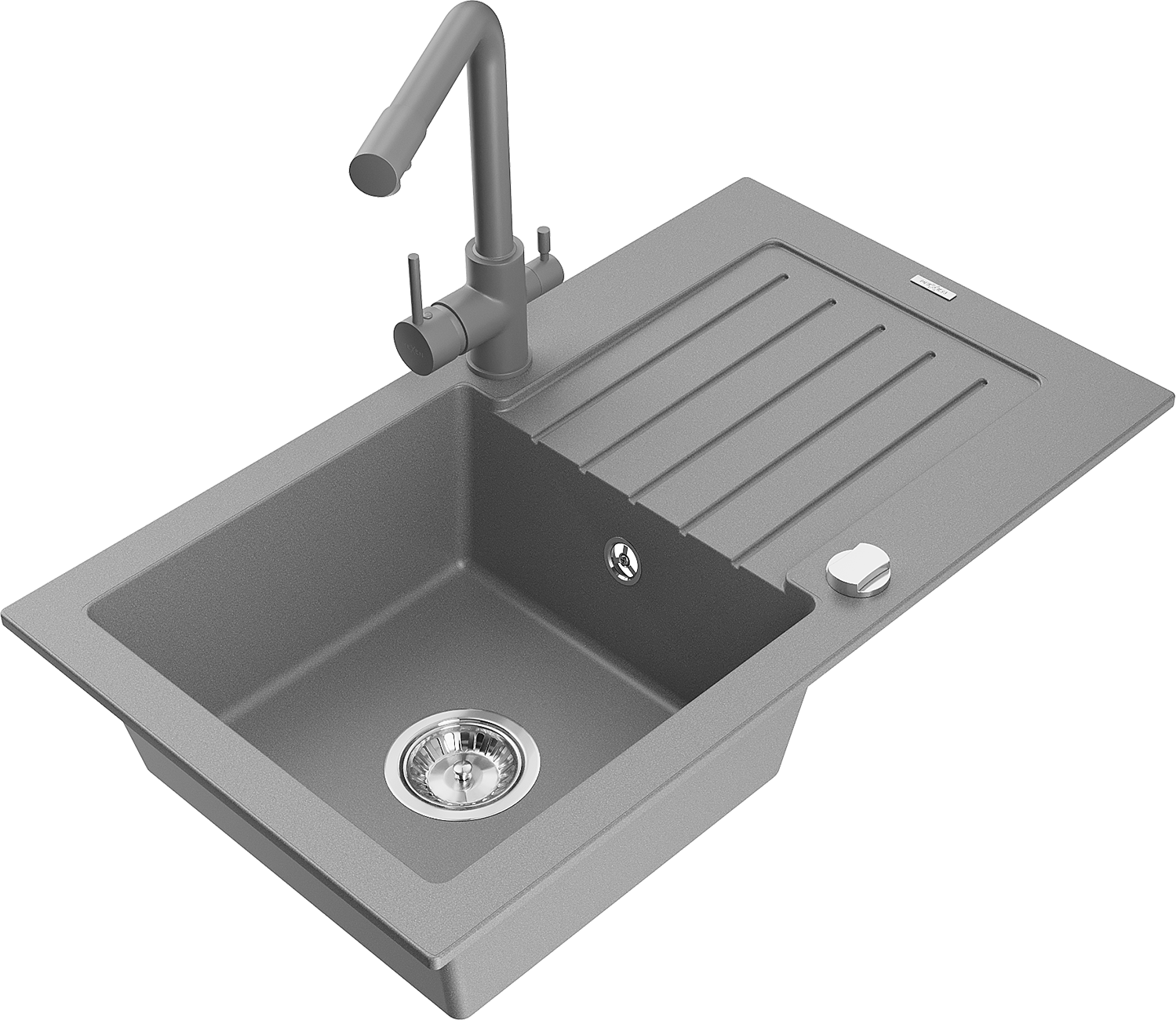 Mexen Pablo lavello in granito a 1 vasca con scolapiatti e rubinetto cucina Duero, grigio - 6510-71-671600-71