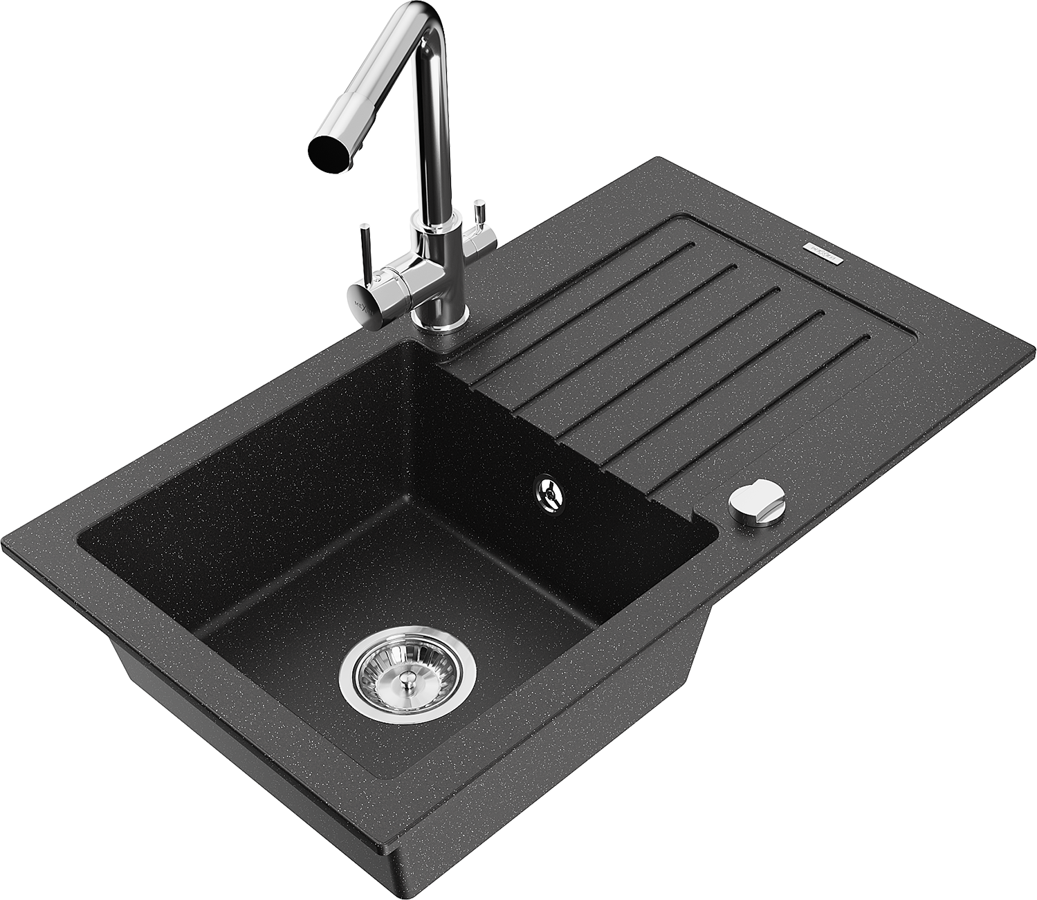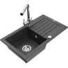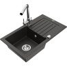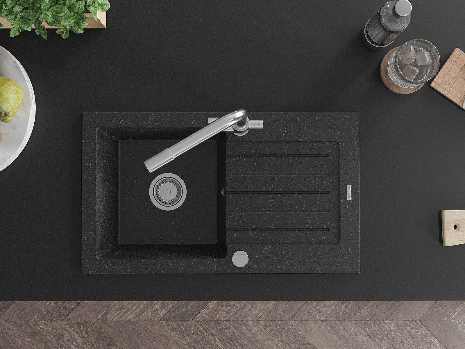 Mexen Pablo lavello in granito a 1 vasca con scolapiatti e rubinetto da cucina Duero, nero/argento metallizzato