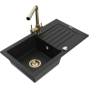 Mexen Pablo lavello in granito a 1 vasca con scolapiatti e rubinetto da cucina Duero, nero/argento metallizzato