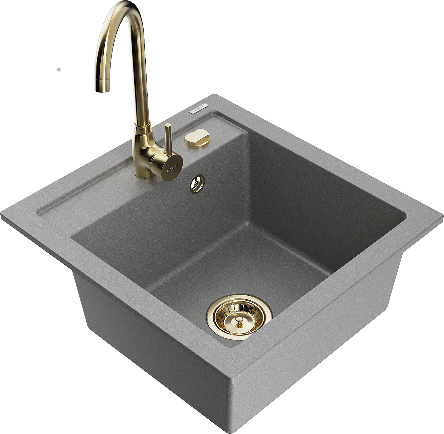 Mexen Vito lavello in granito a 1 vasca con miscelatore da cucina Telma, grigio - 6503-71-670200-50