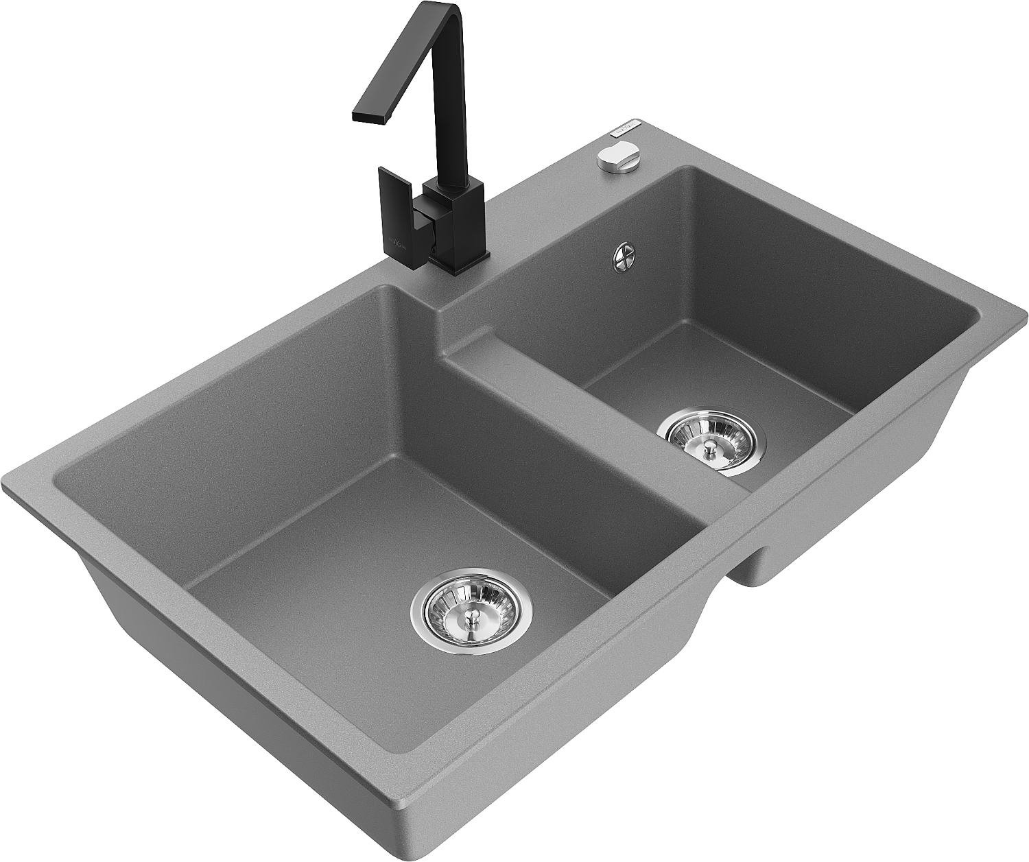 Mexen Tomas lavello da cucina composito a 2 vasche con miscelatore Rita, grigio - 6516-71-670300-70