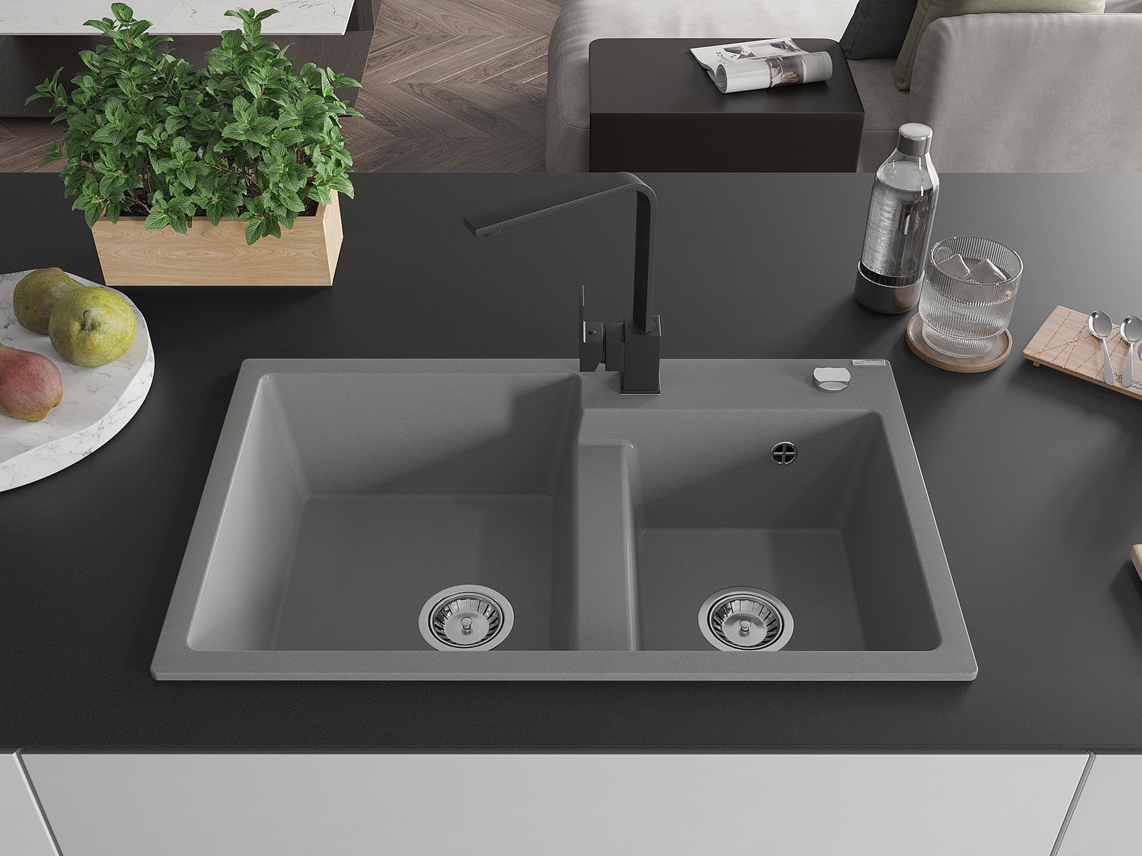 Il lavello è realizzato in granito di alta qualità. Rappresenta un complemento elegante e, soprattutto, pratico per ogni cucina, indipendentemente dal suo stile. L'alta qualità e la durata del granito garantiscono un utilizzo che dura per molti anni.