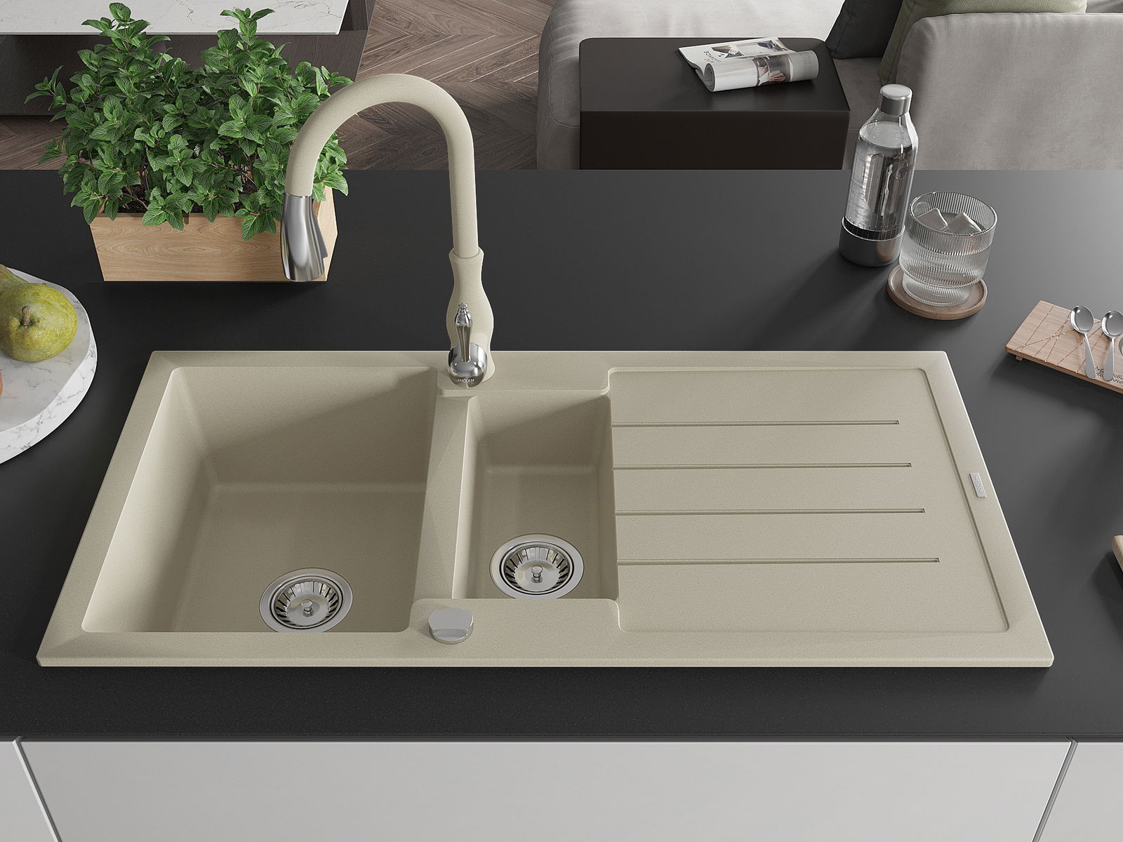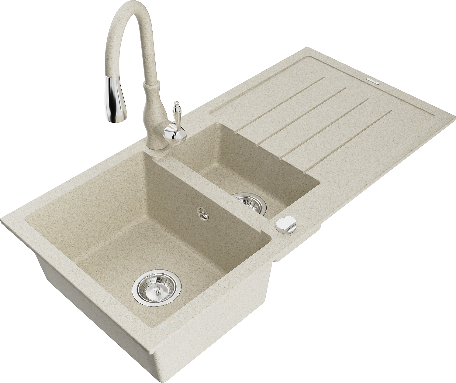 Mexen Andres lavello in granito a 1,5 vasca con gocciolatoio e rubinetto cucina Savita, beige - 6515-69-672601-69