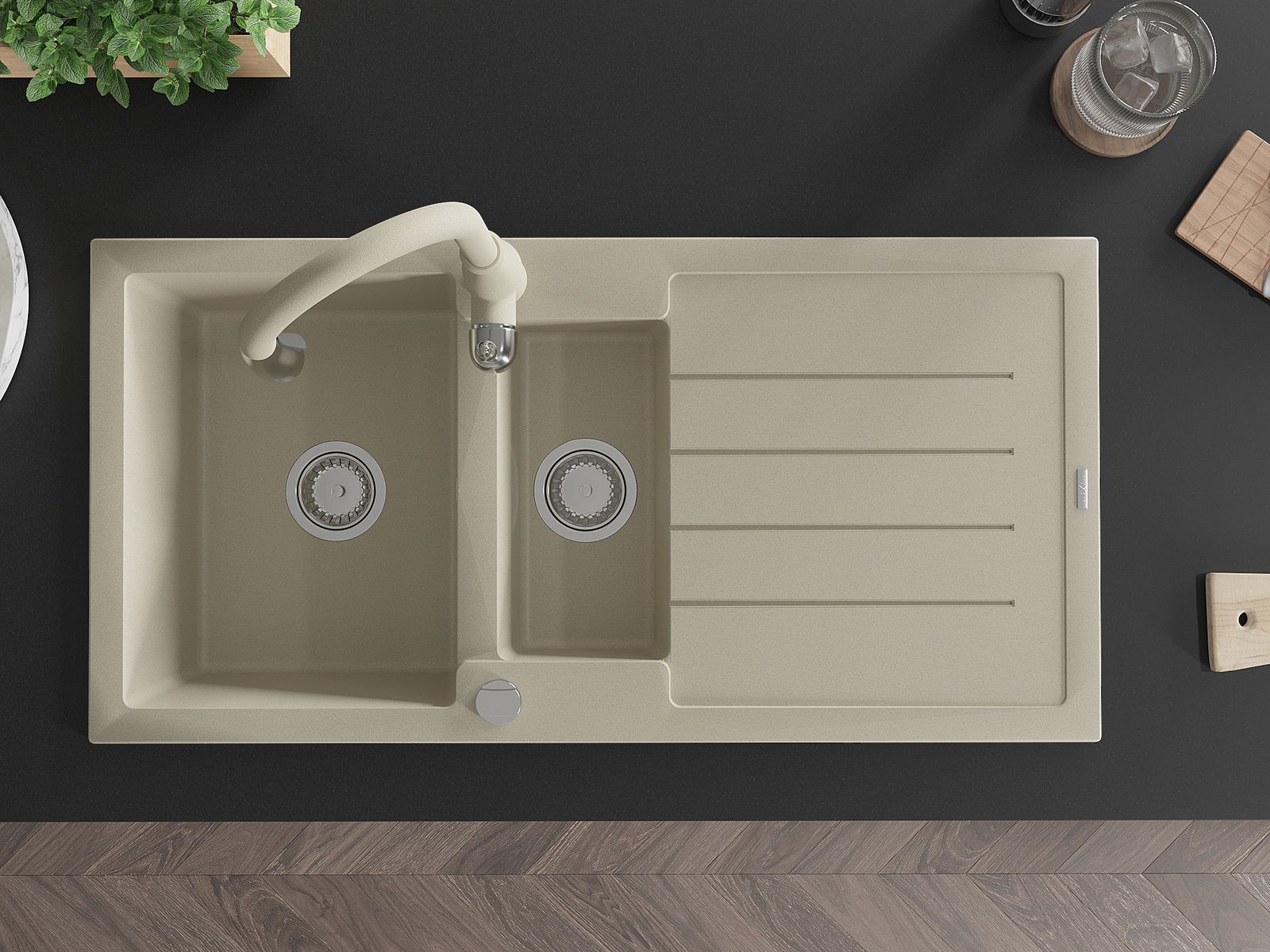 La scelta di un lavello con sgocciolatoio è una soluzione pratica che consente di riporre piatti, verdure e frutta lavati. Lo sgocciolatoio facilita la cucina quotidiana e aiuta a mantenere l'ordine in cucina.
