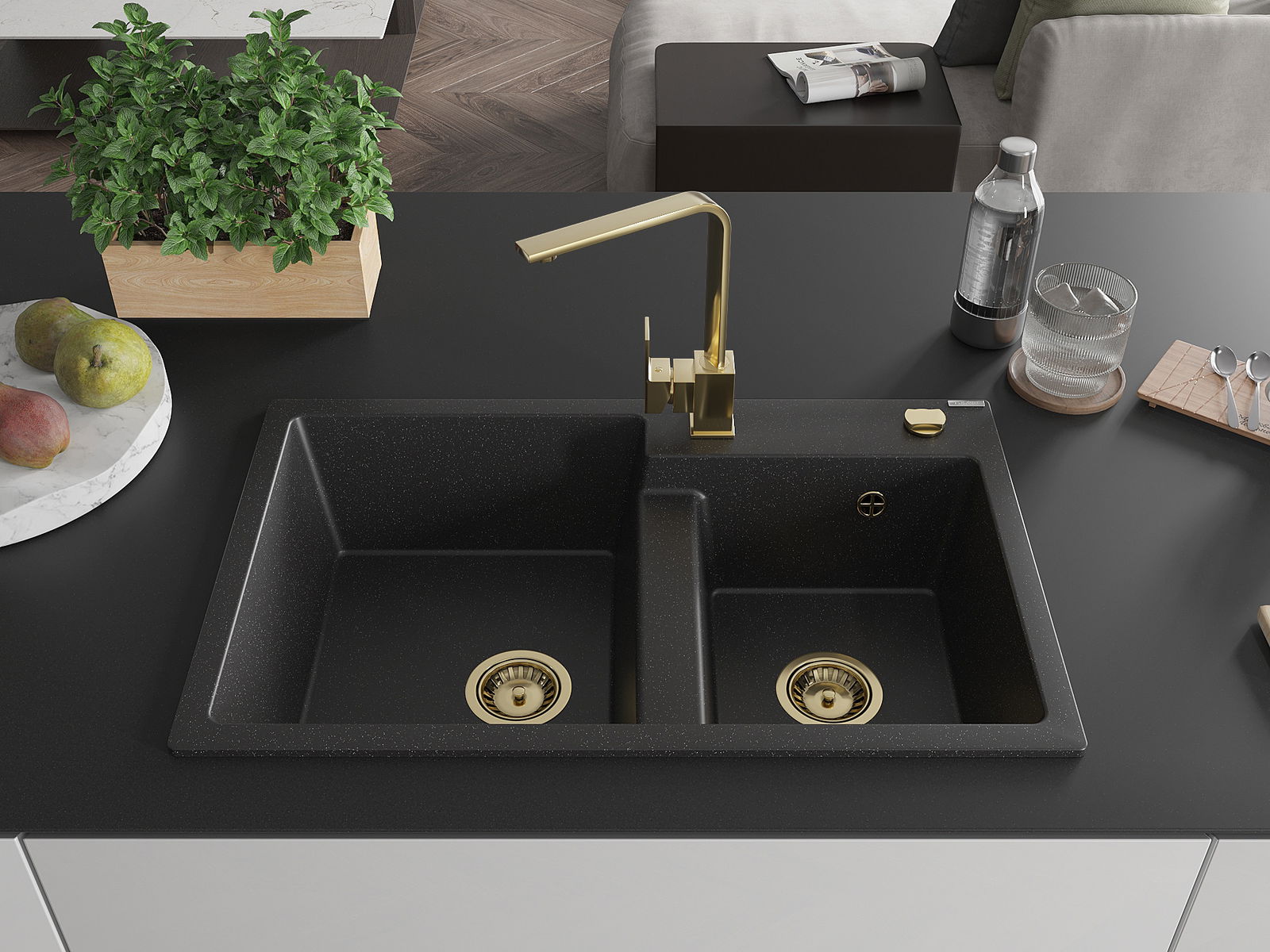 Il lavello è realizzato in granito di alta qualità. Rappresenta un complemento elegante e, soprattutto, pratico per ogni cucina, indipendentemente dal suo stile. L'alta qualità e la durata del granito garantiscono un utilizzo che dura per molti anni.