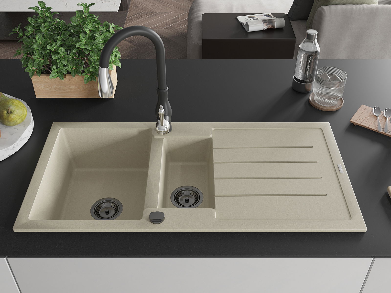 Il lavello è realizzato in granito di alta qualità. Rappresenta un complemento elegante e, soprattutto, pratico per ogni cucina, indipendentemente dal suo stile. L'alta qualità e la durata del granito garantiscono un utilizzo che dura per molti anni.
