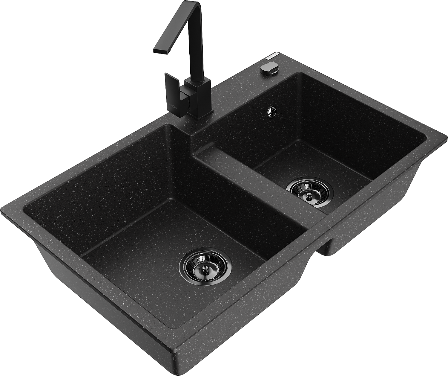 Mexen Tomas lavello in granito a 2 vasche con rubinetto da cucina Rita, nero/metallo argento - 6516-73-670300-70-B