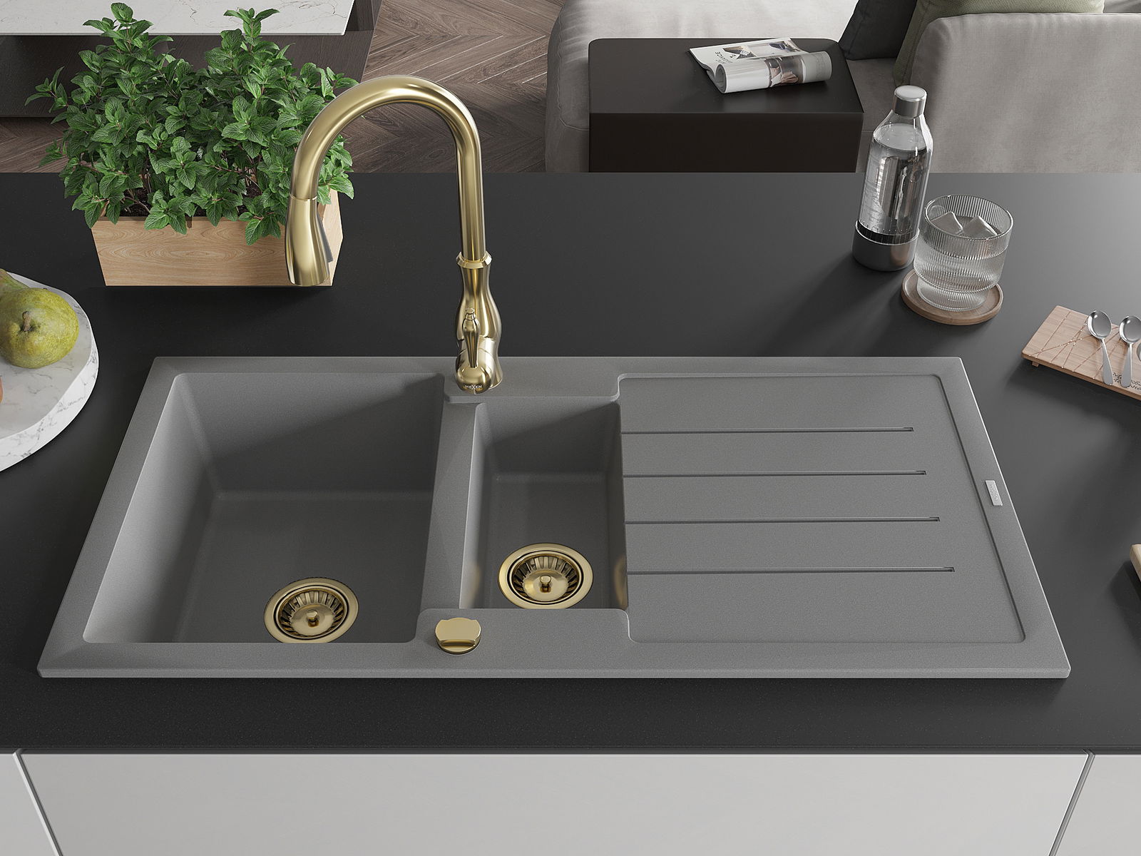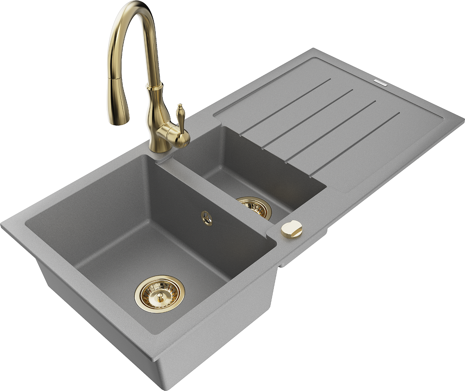 Mexen Andres lavello in granito 1,5 vasche con scolapiatti e rubinetto da cucina Savita, grigio - 6515-71-672601-50